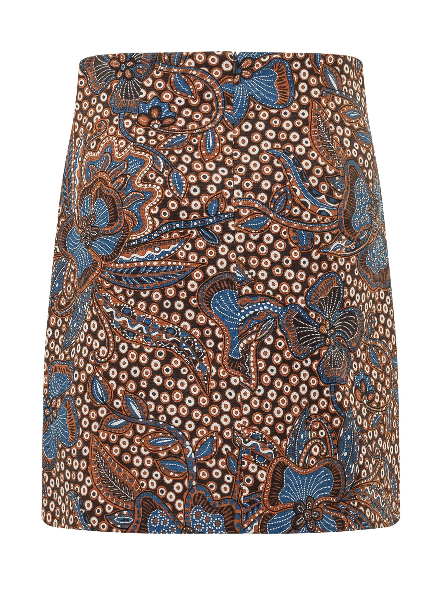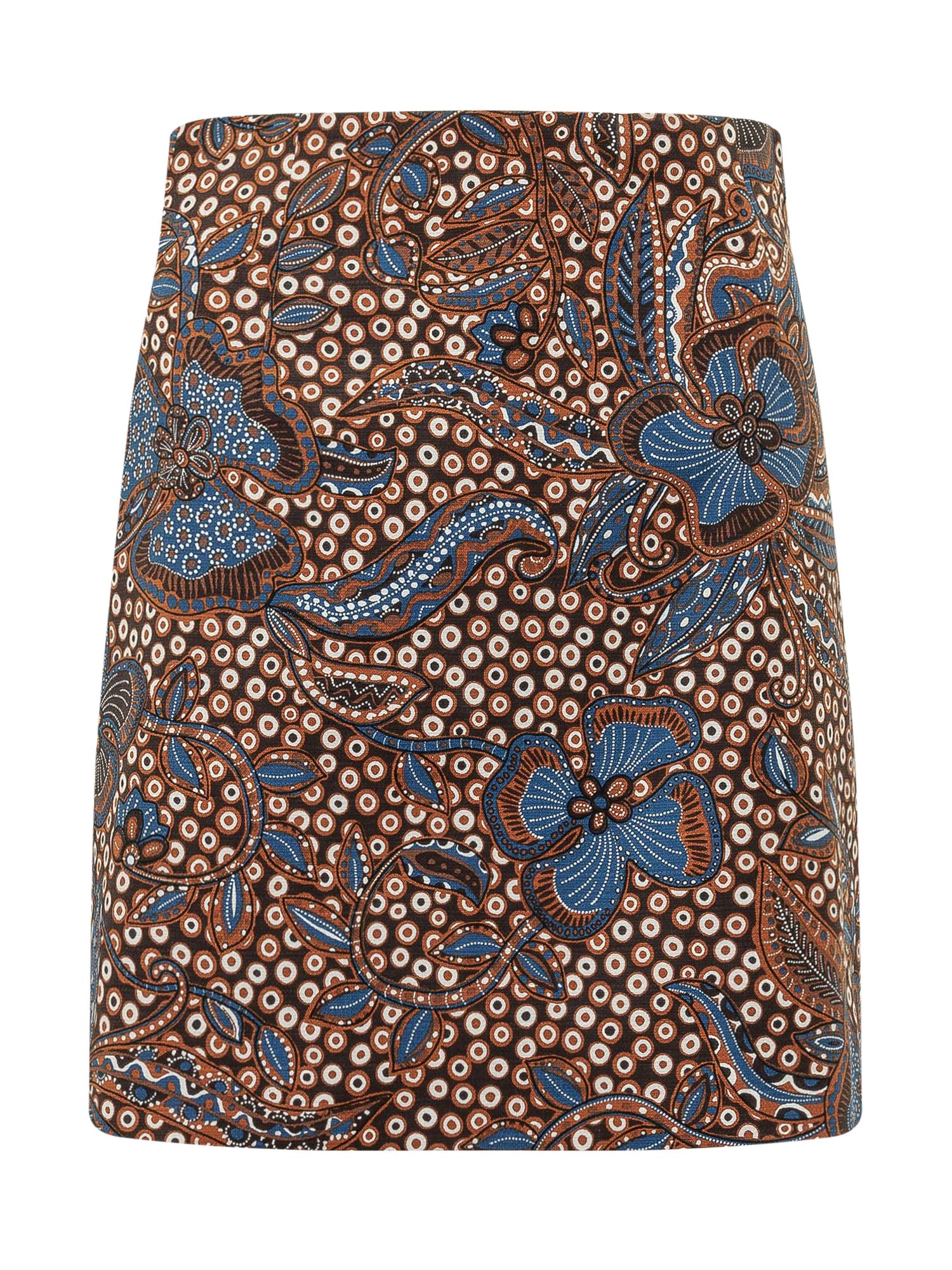 Straight cut skirt with floral print and polka dot pattern, clean structure and refined design