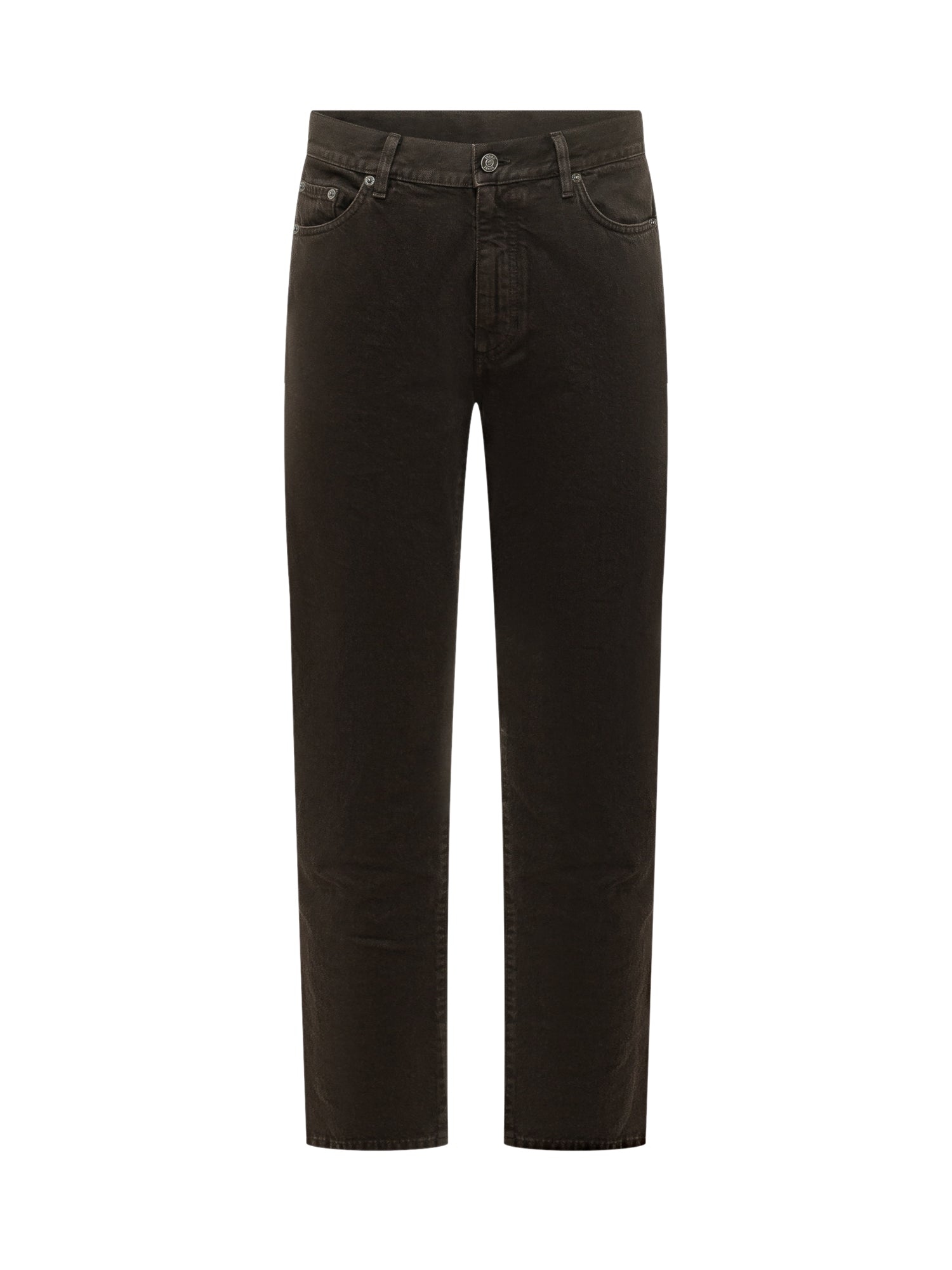 Denim pants with front button and zip closure, belt loops and five pocket design, straight leg with ankle length and regular hem.