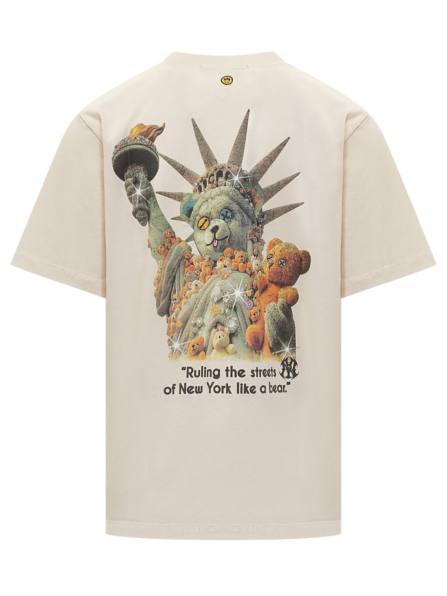Beige cotton T-shirt with Barrow Hall of Fame text on the chest. Oversized fit and minimal design for a refined streetwear vibe.
