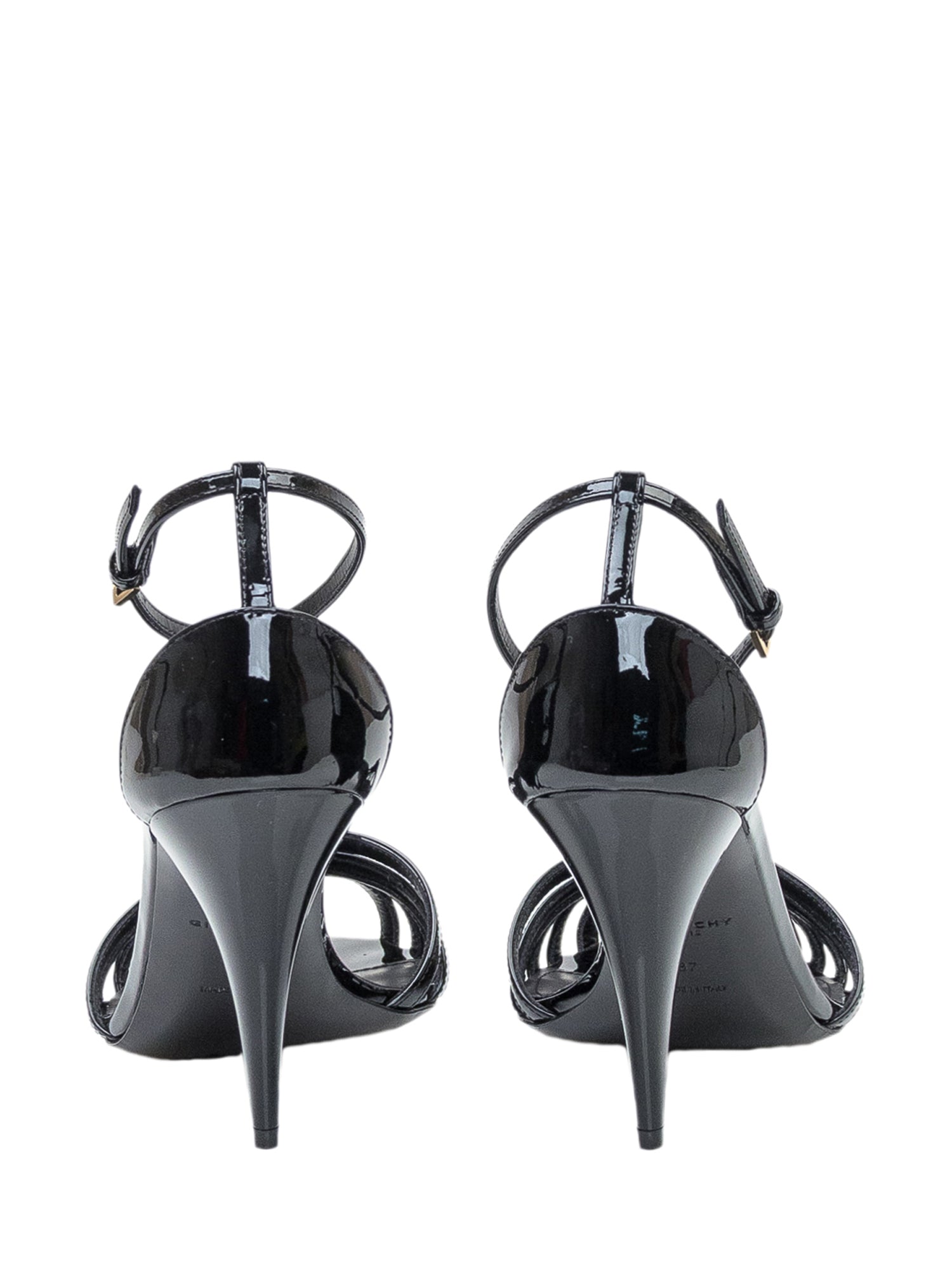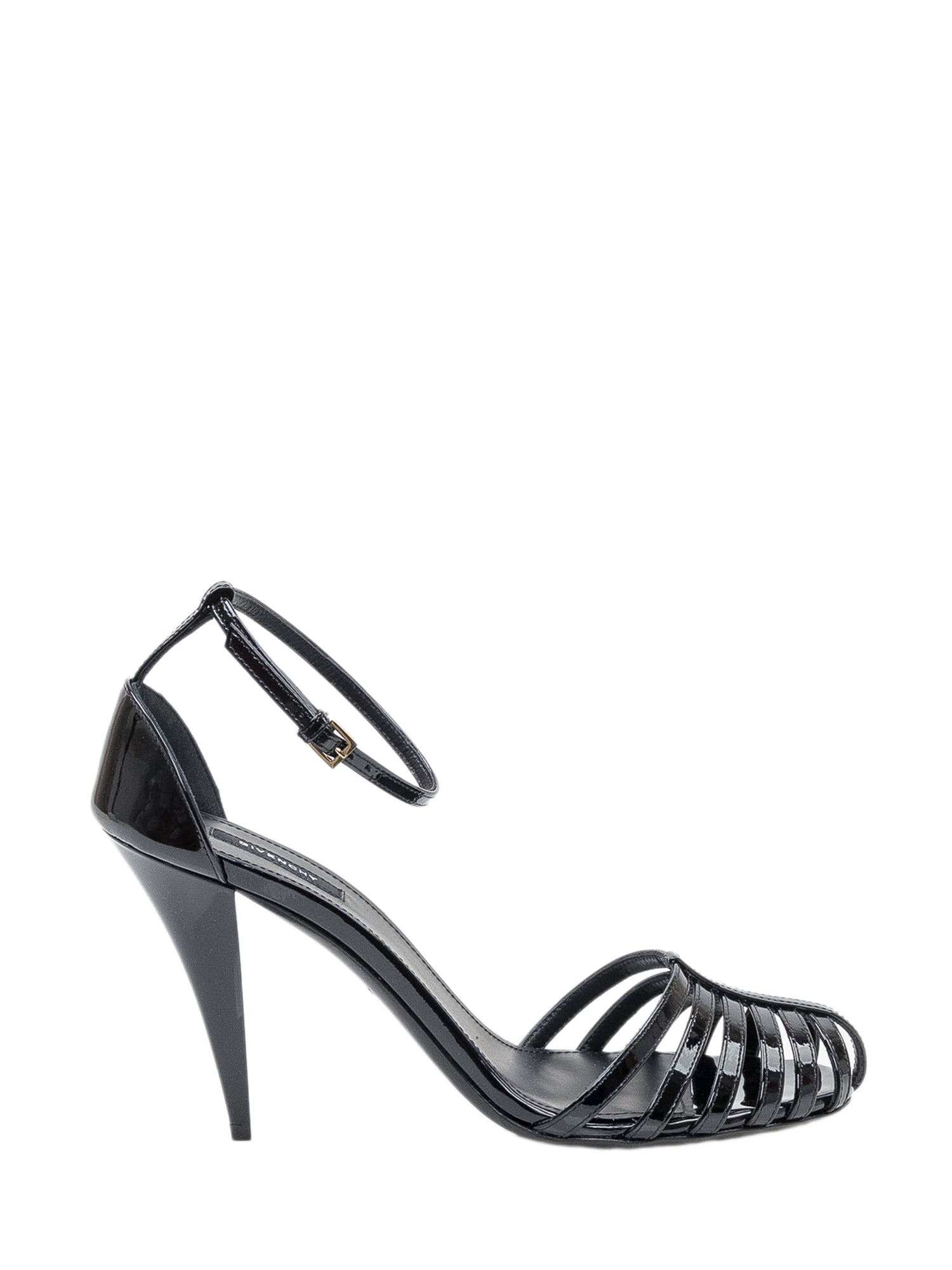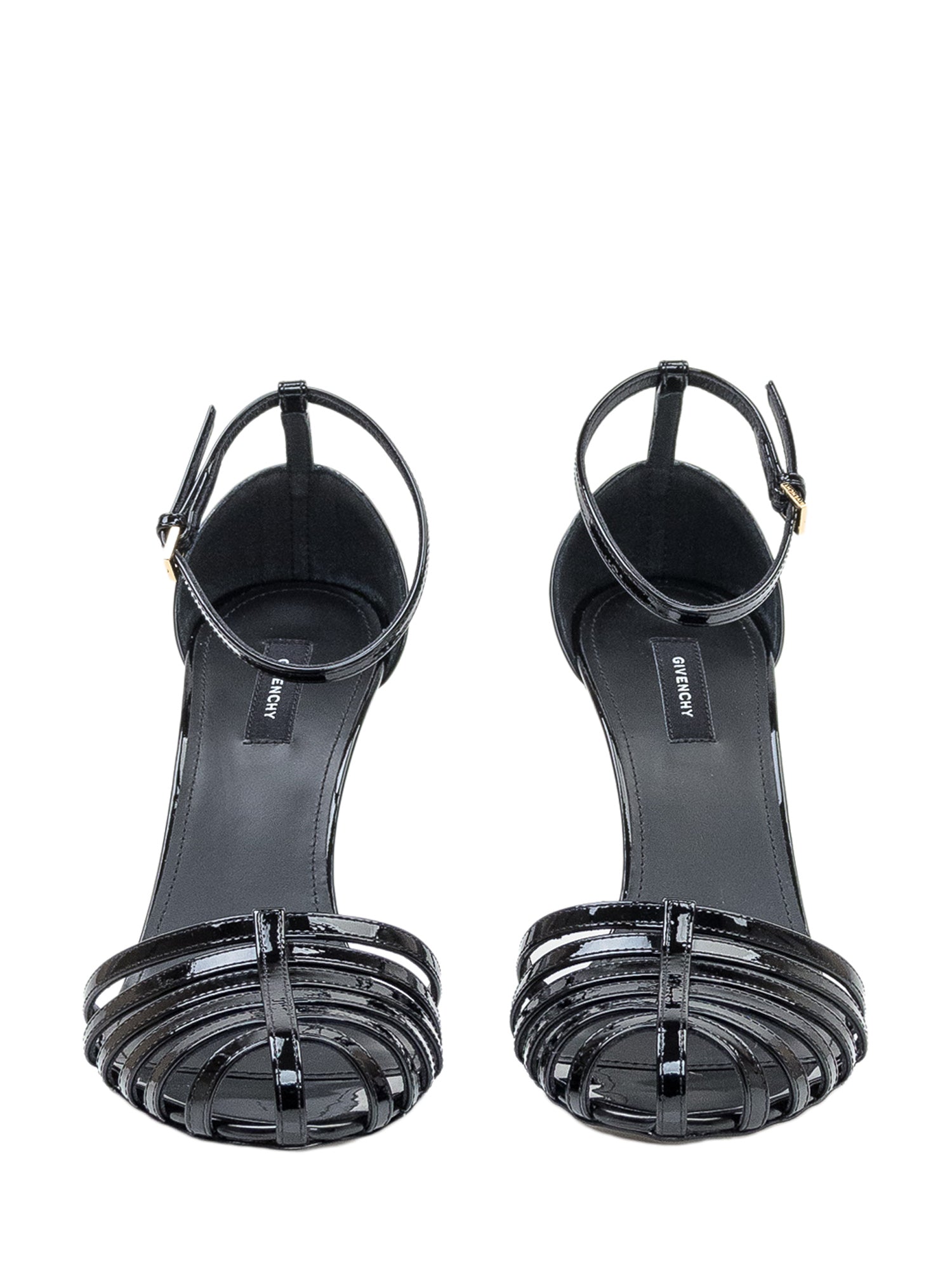 Elegant sandal with woven front straps and adjustable ankle closure.Heel Height: 10 cm