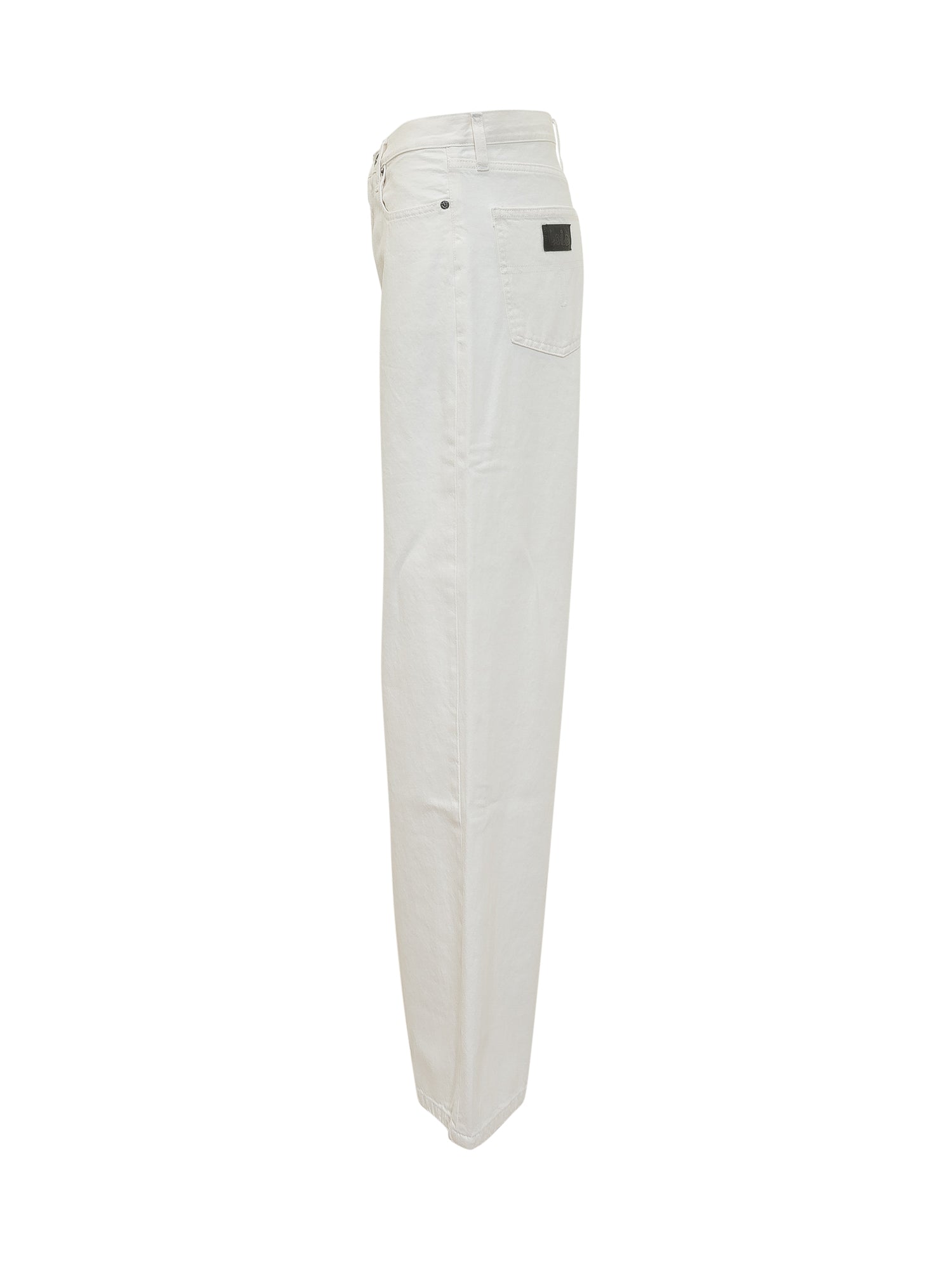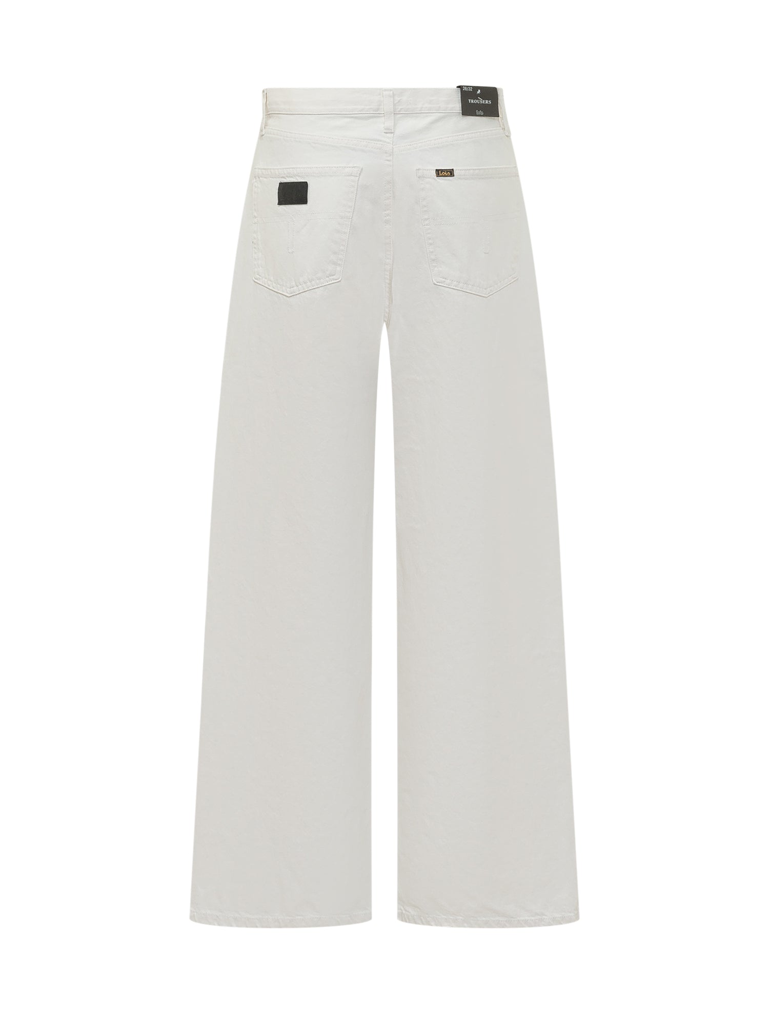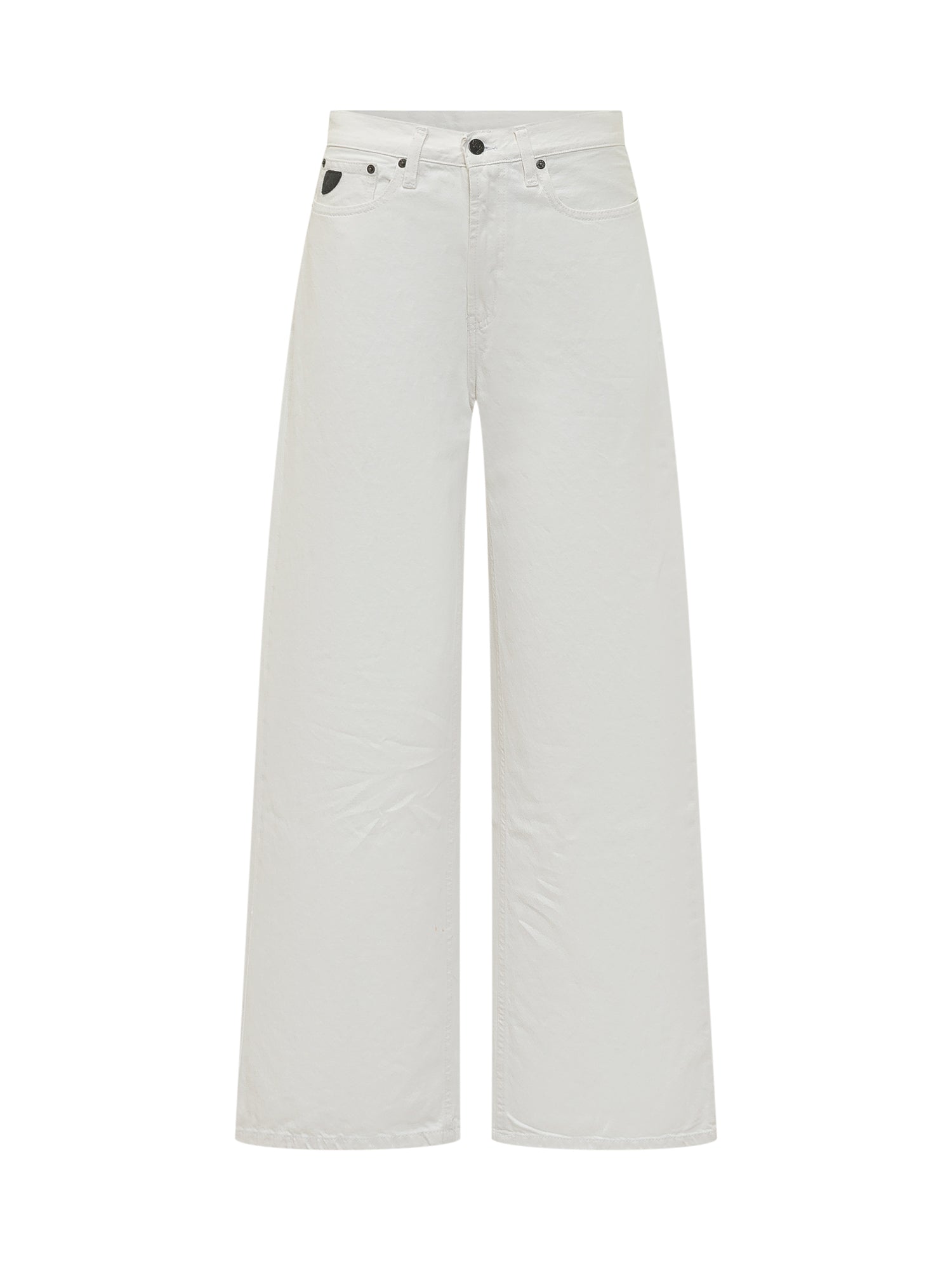 Five pocket jeans with button closure. Wide straight leg for a contemporary style.