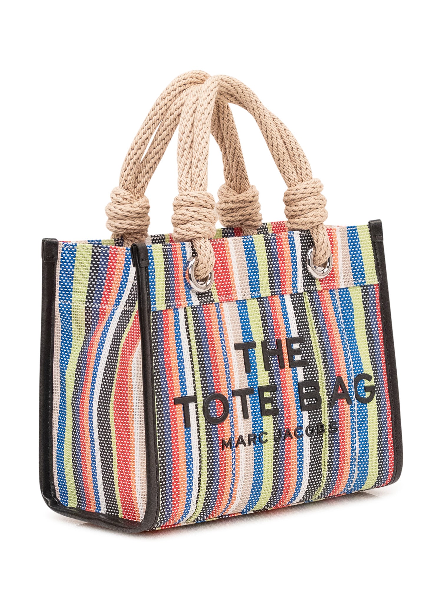 Tote bag with structured shape, striped pattern, woven handles and front logo, spacious and distinctive design