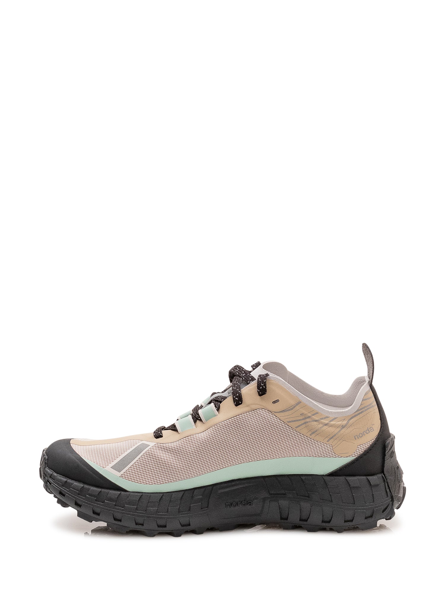 Sport shoe with lace up closure, low profile structure and treaded sole, dynamic design with graphic inserts and durable construction