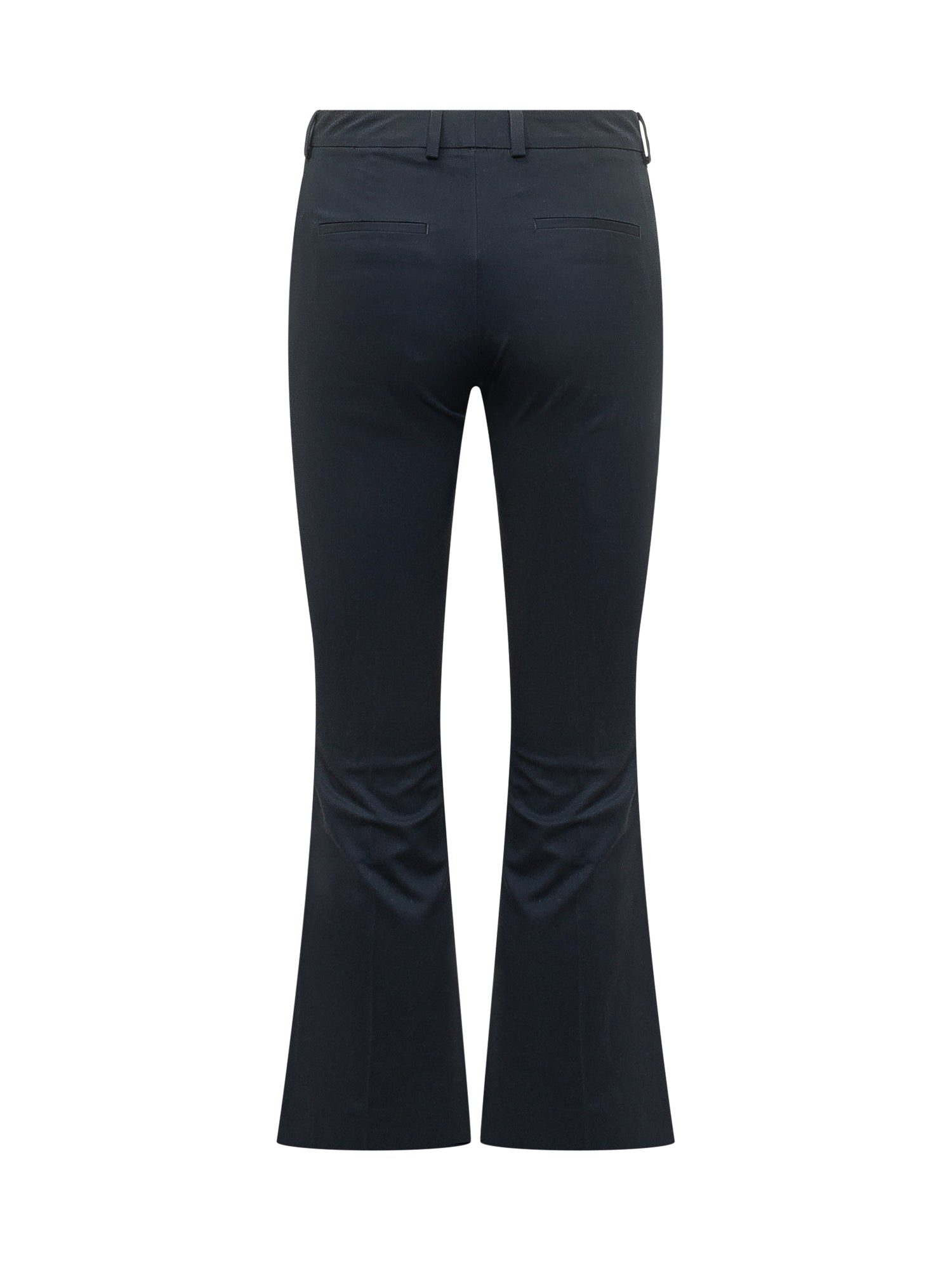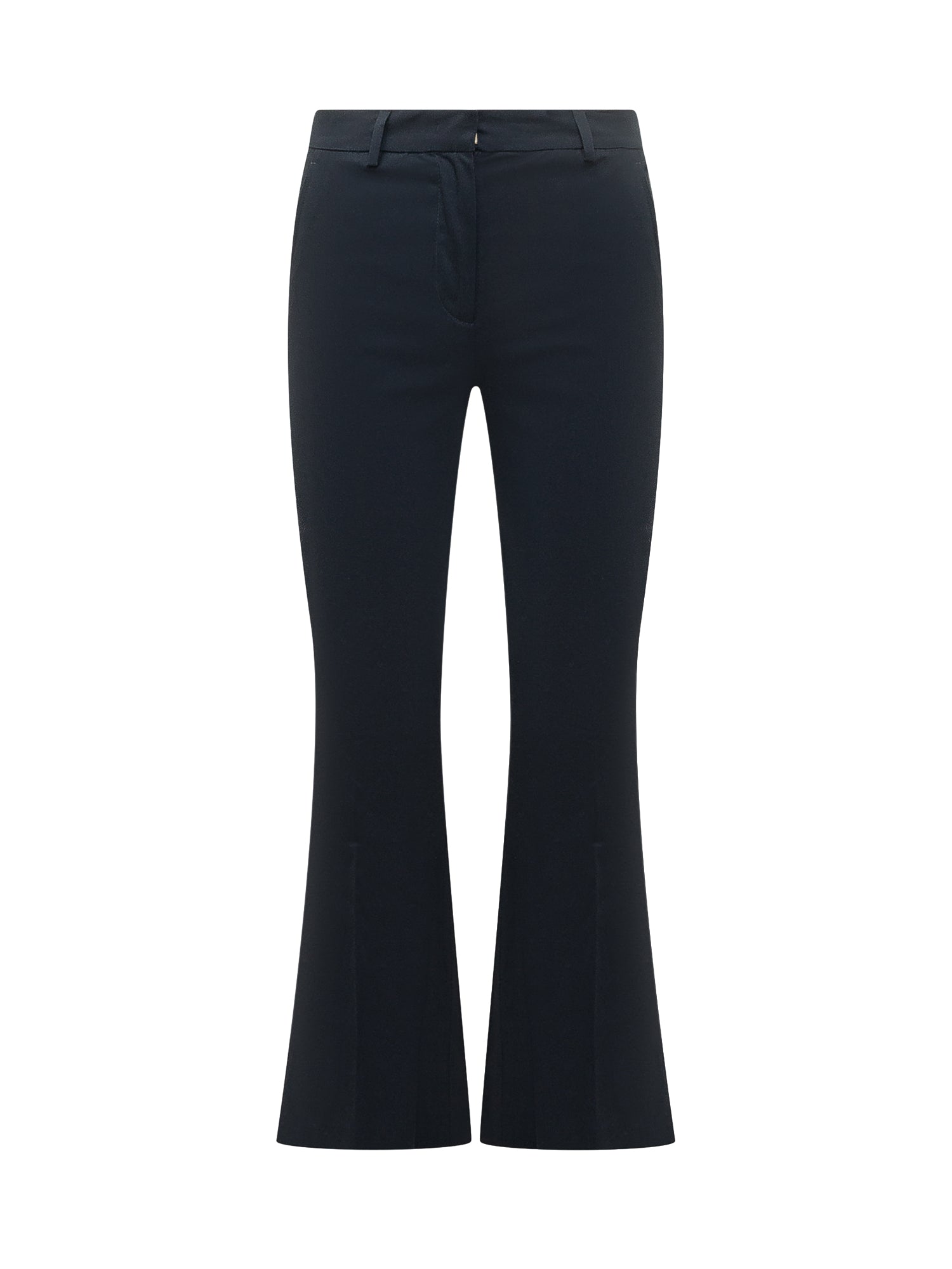 Pants with front closure and belt loops. Slim leg with flared hem for a feminine silhouette.