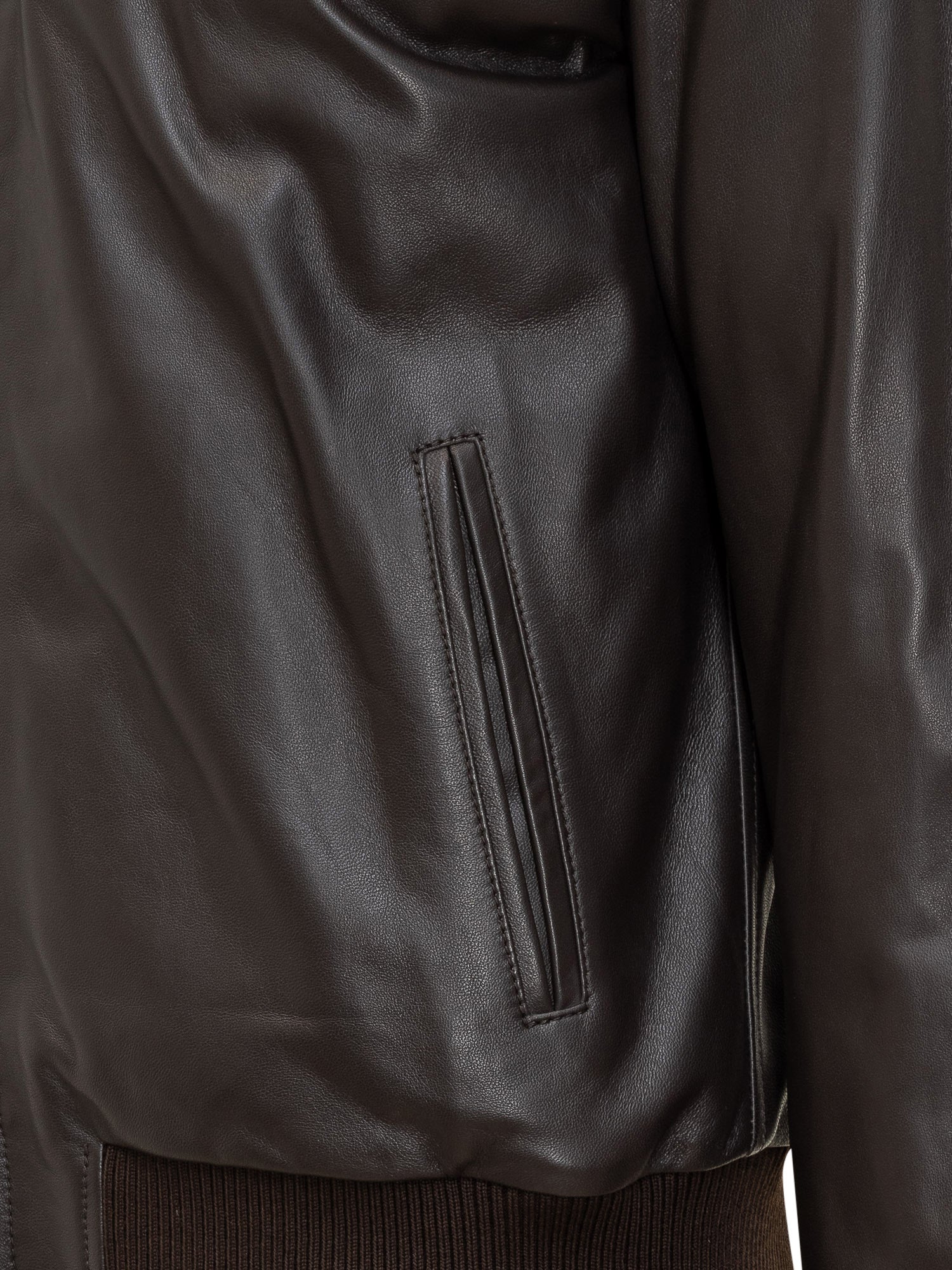 Renzo Cenci bomber jacket in brown leather with ribbed knit collar, cuffs and hem.
