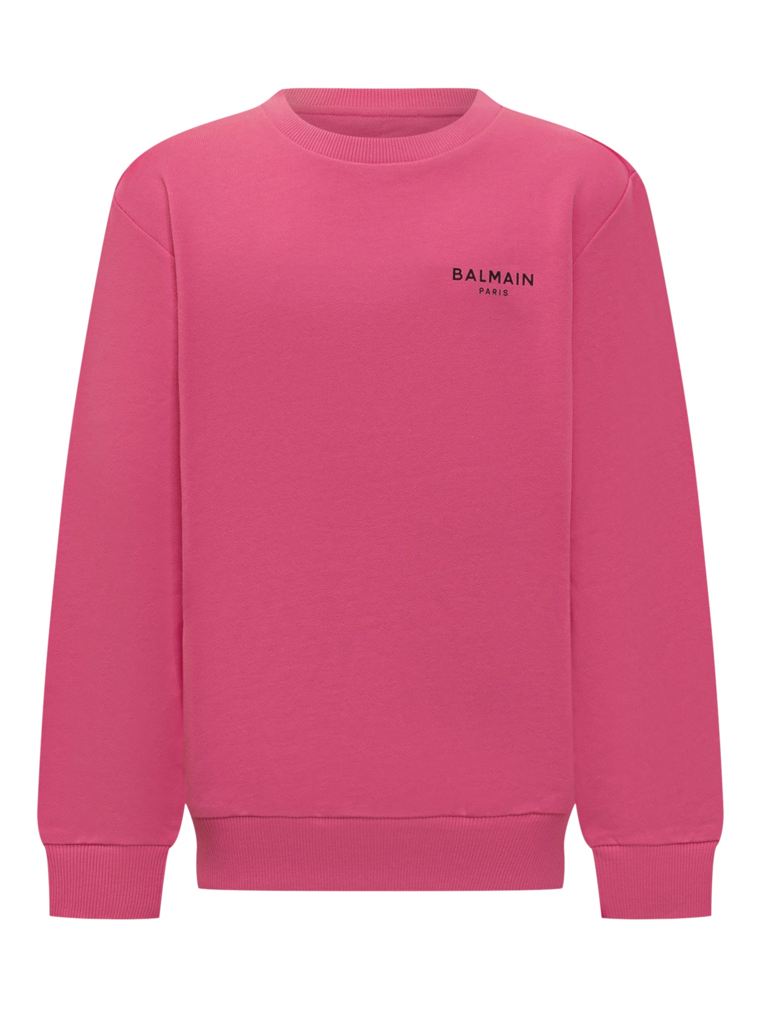 Pink kids' sweatshirt by Balmain, featuring the logo printed in black on the chest.