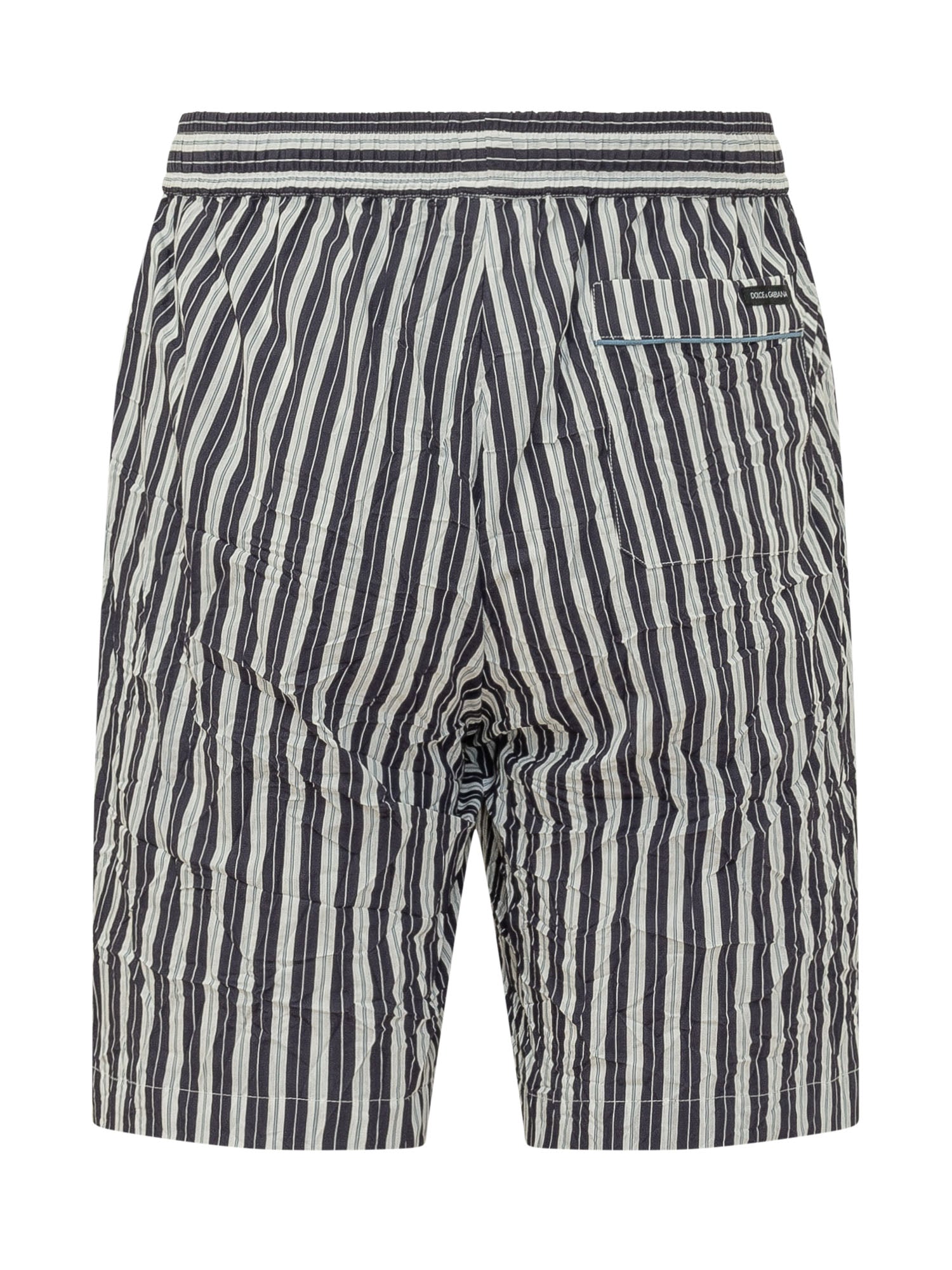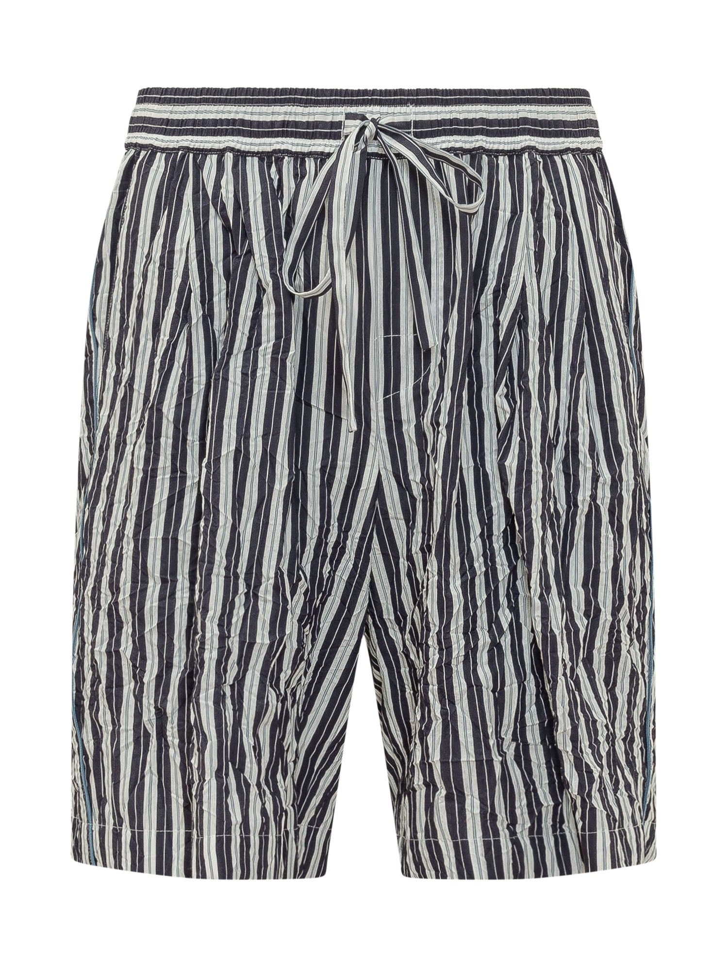 Bermuda with elastic waistband and adjustable drawstring, wide leg and lightweight structure, vertical stripe pattern and distinctive design, ideal for a modern and comfortable style