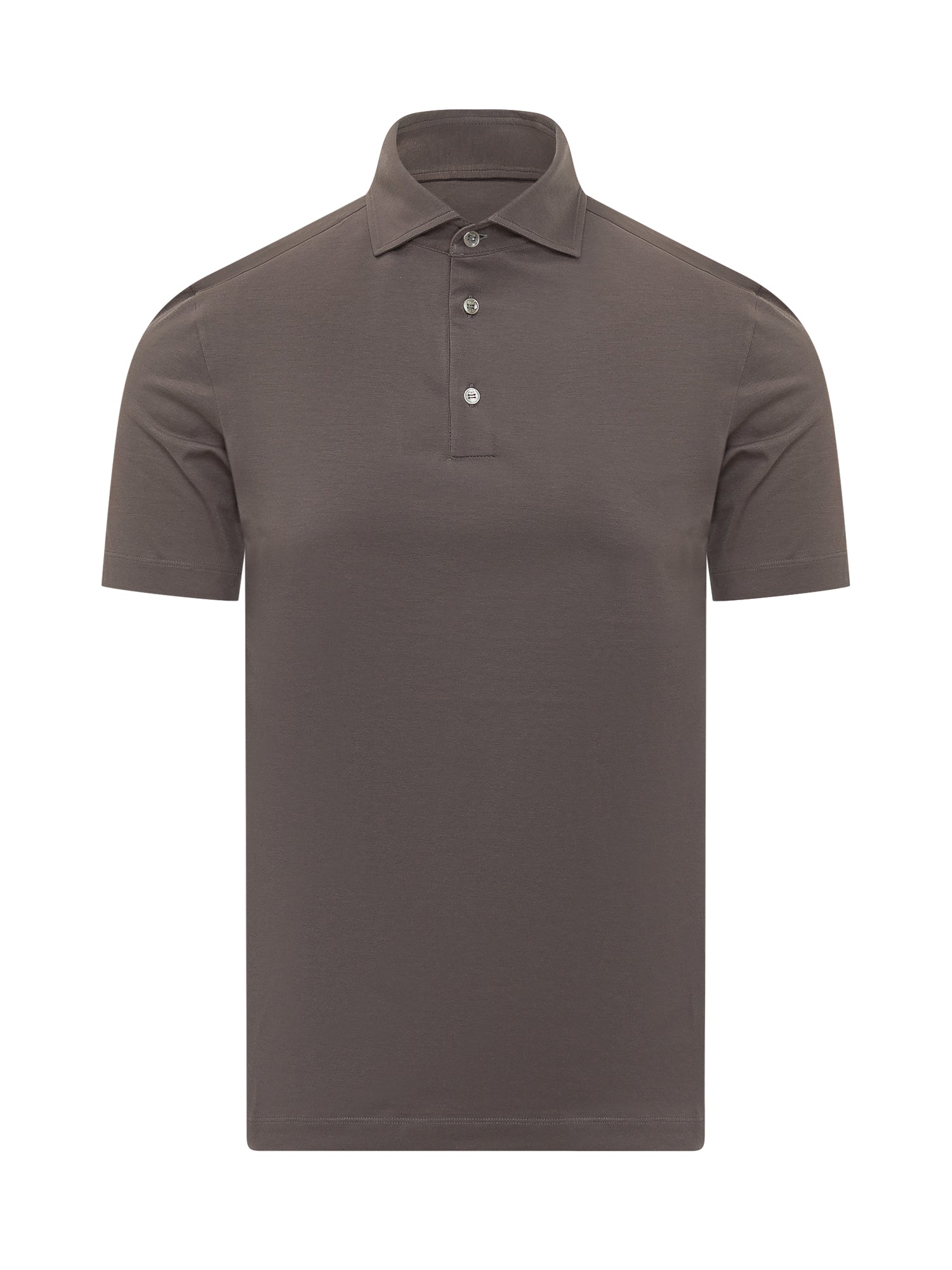 Short sleeve polo with classic collar, front placket with three buttons.