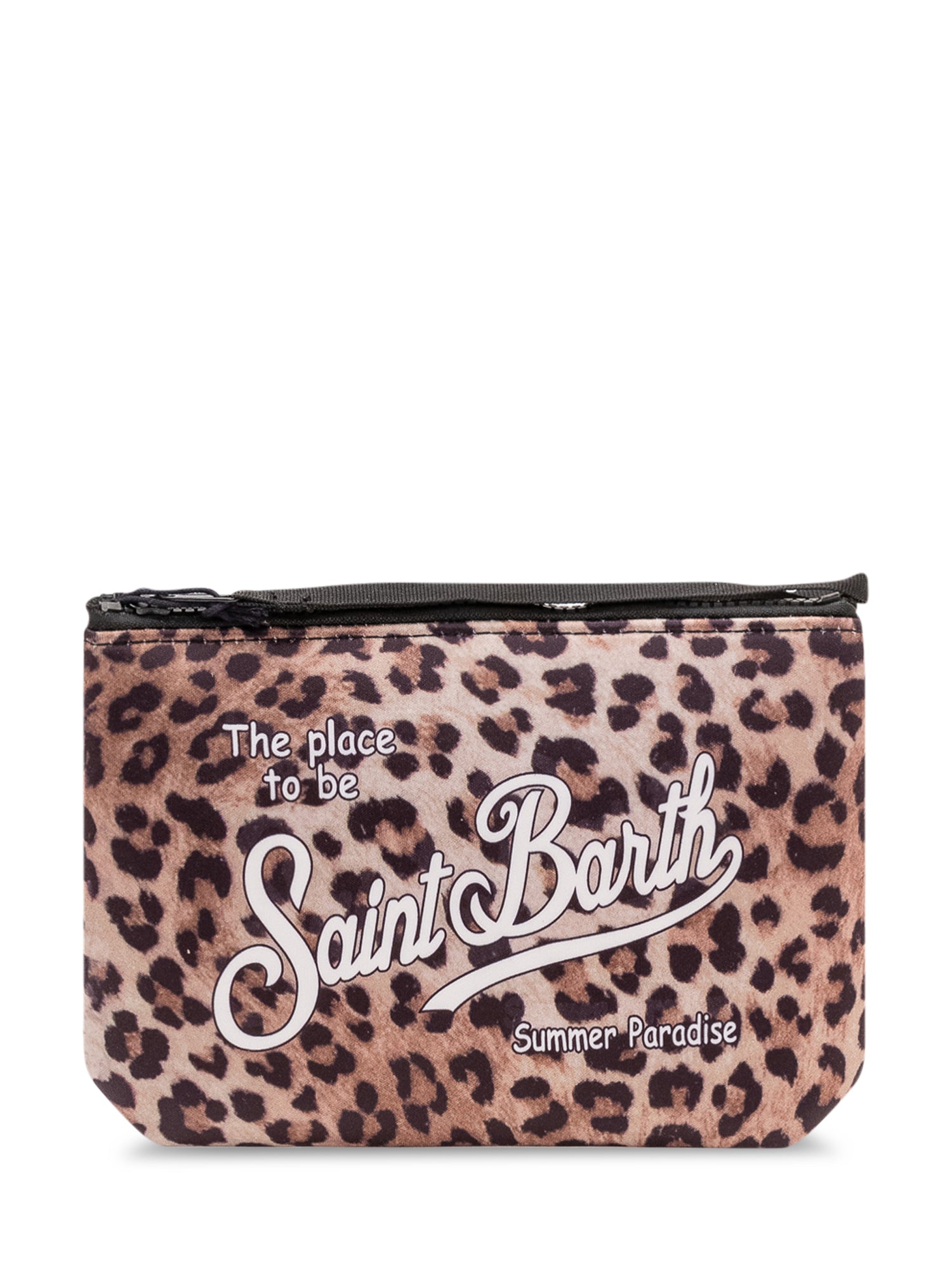 Pouch with zip closure, animal print and contrasting front logo, compact size and soft design