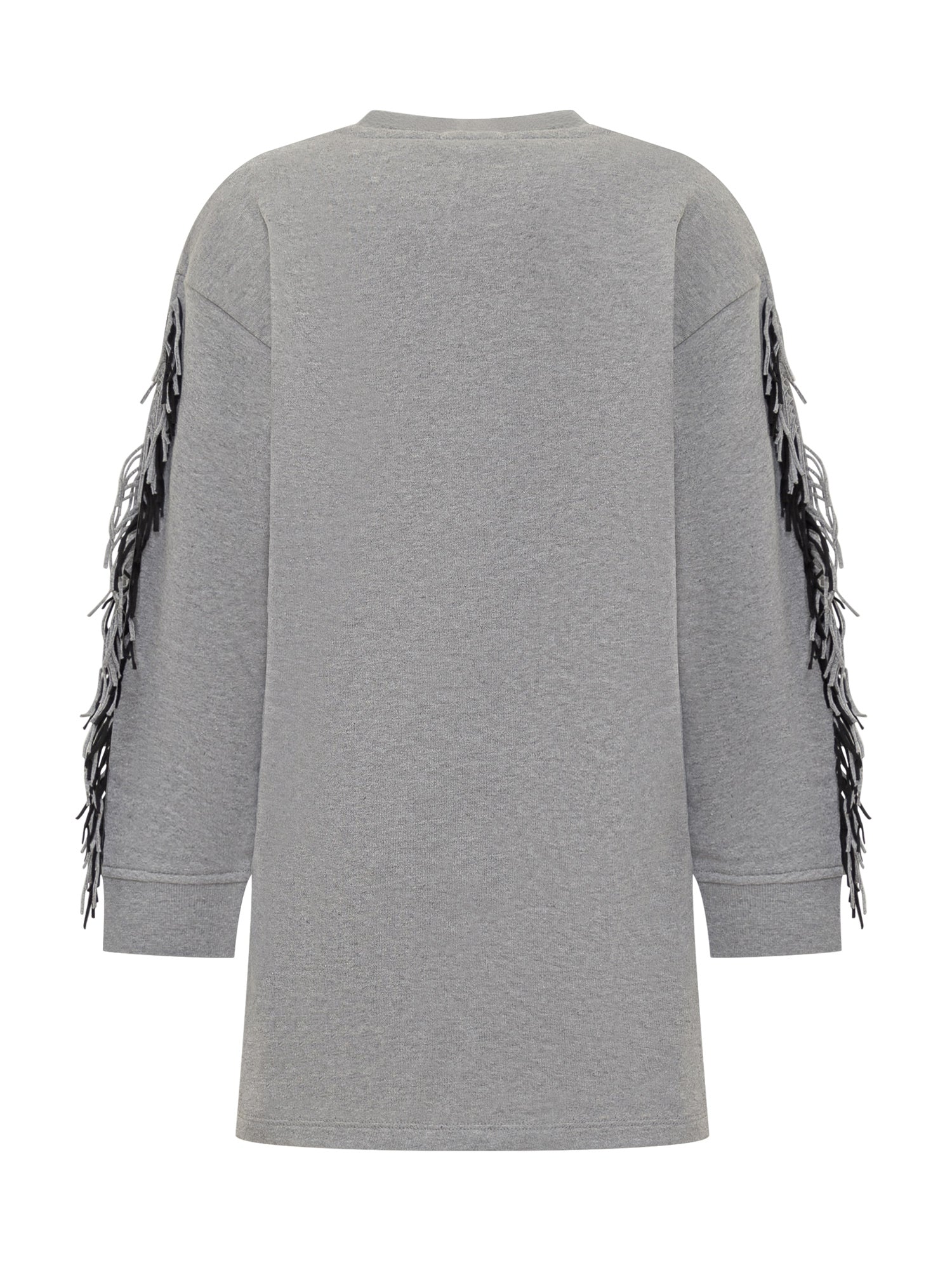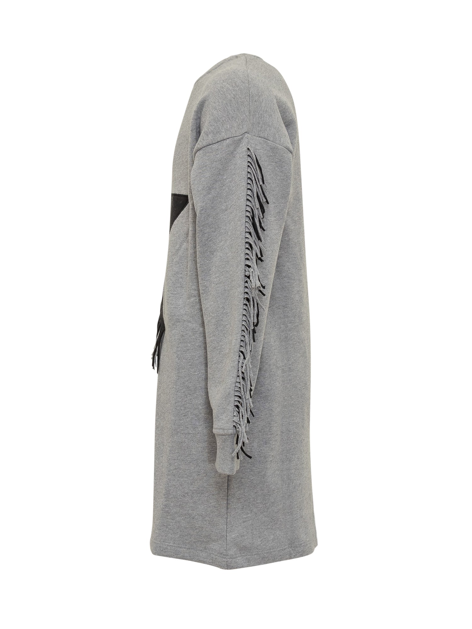 Stella McCartney oversized grey organic cotton sweatshirt featuring a large black star with fringe details on sleeves and hem.