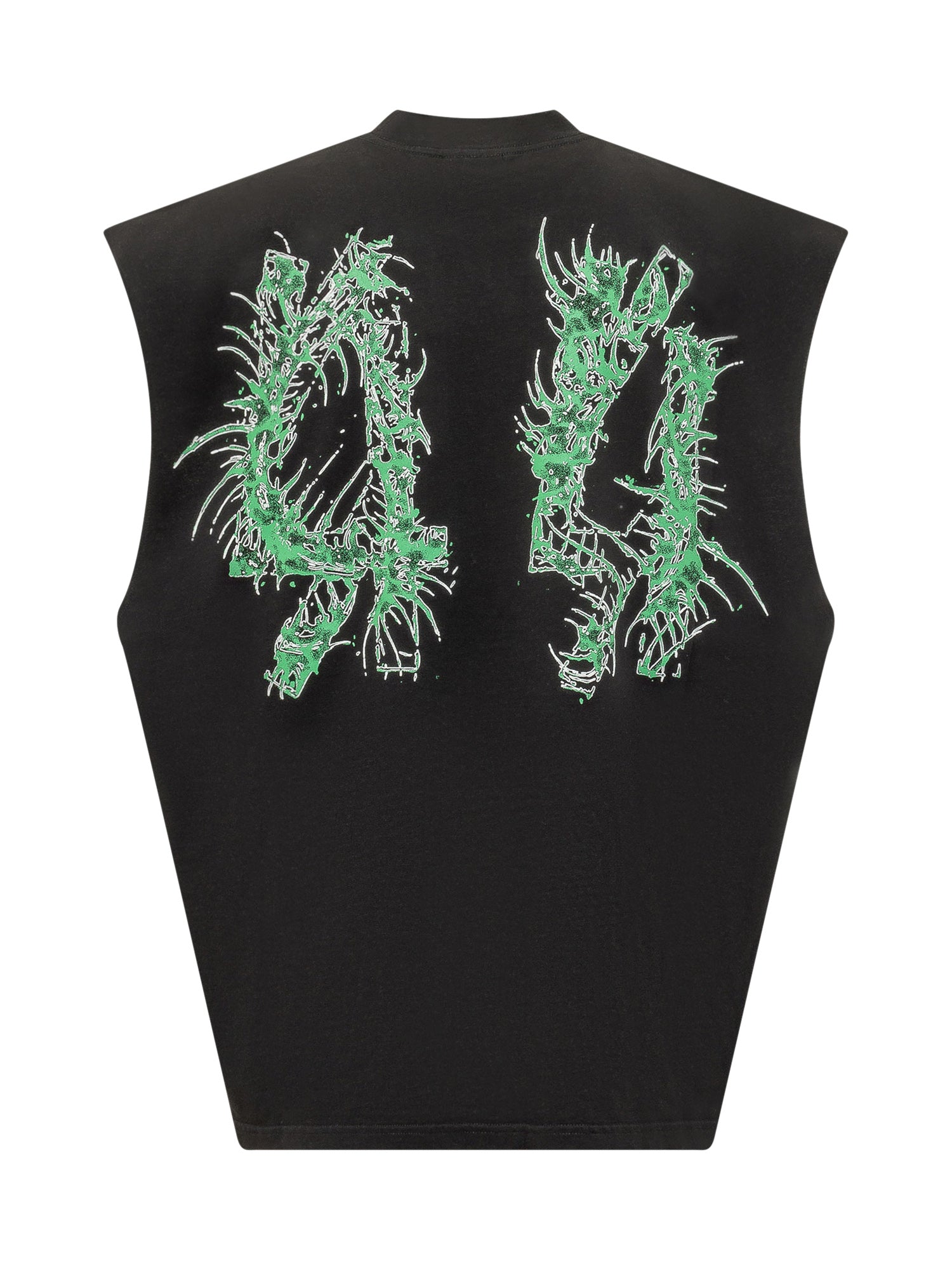 Sleeveless top with crew neck, logo on chest, large print on back.