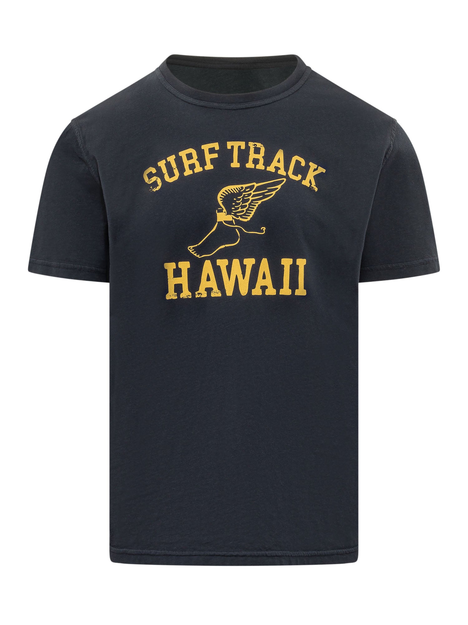 T-shirt with crew neck and short sleeves, featuring front graphic print with lettering and design.