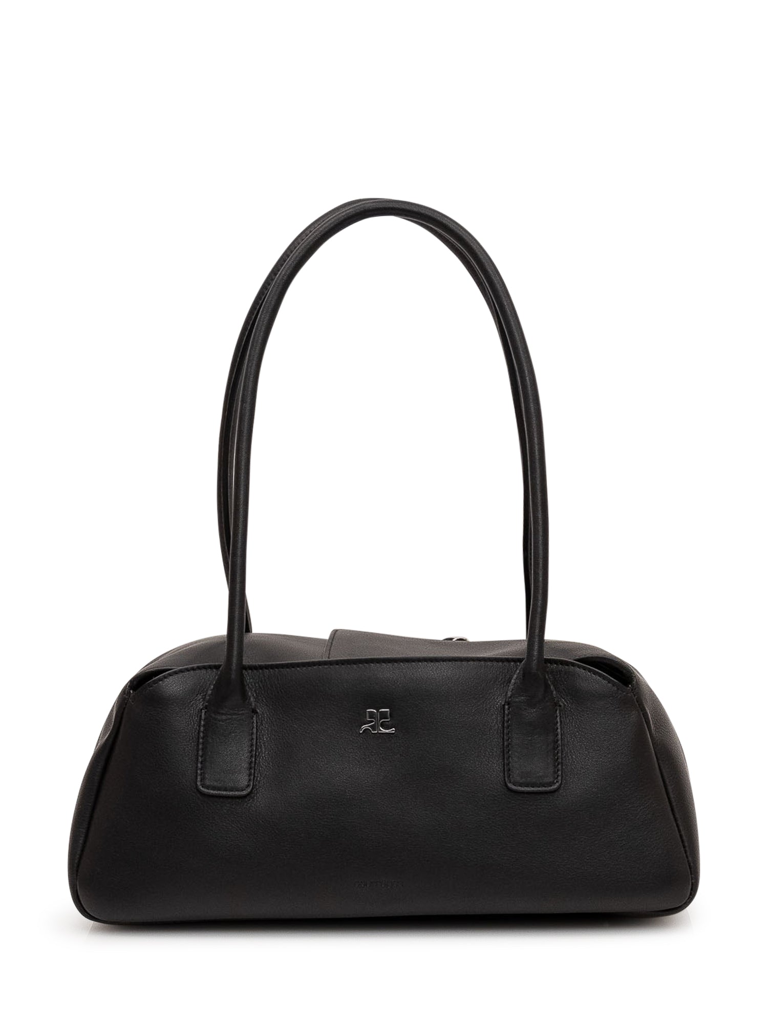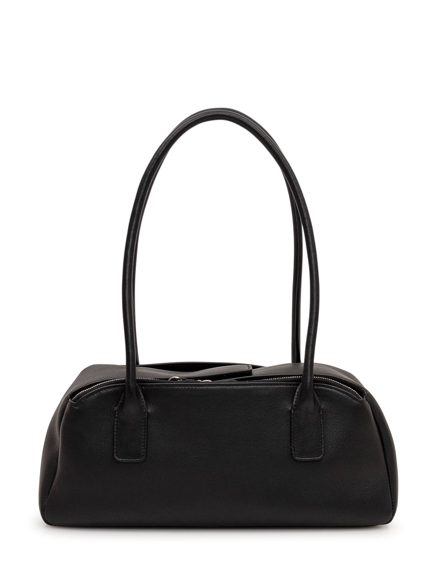 Leather handbag with structured silhouette, double long handles and top zip closure. Logo detail on the front and compact design with rounded lines.