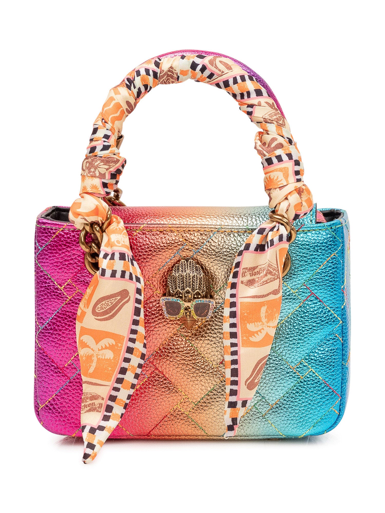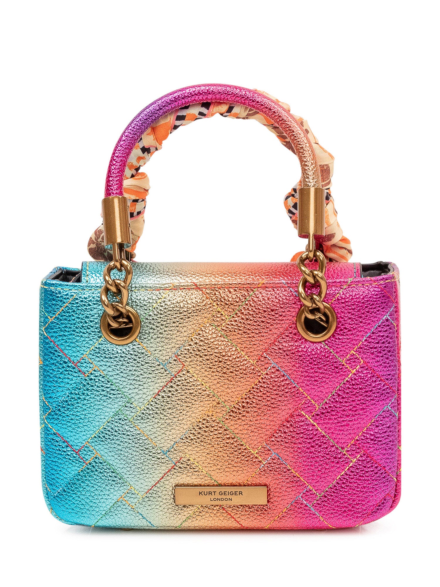 Mini bag with top handle, structured shape and quilted pattern, knotted scarf detail and front closure