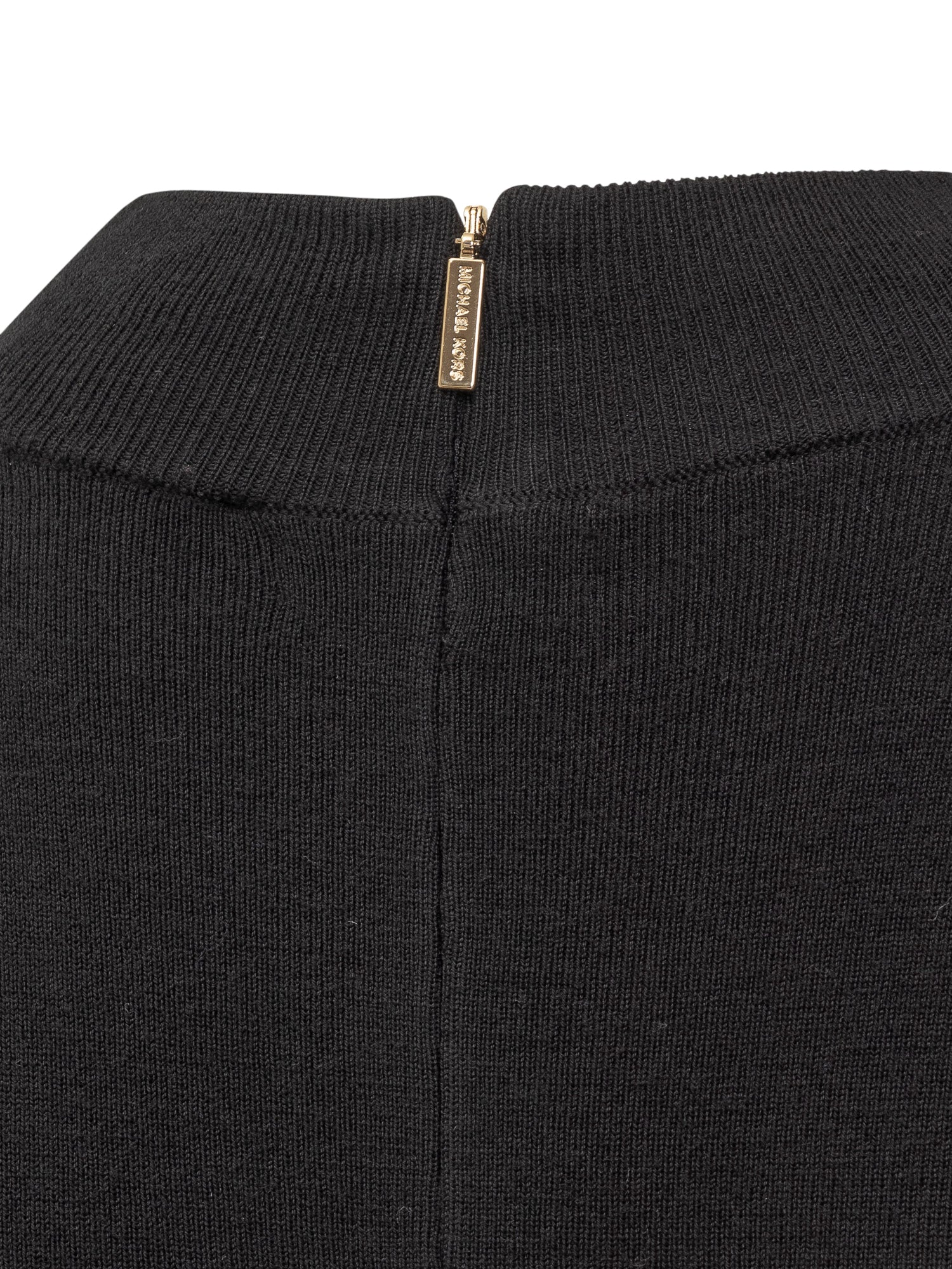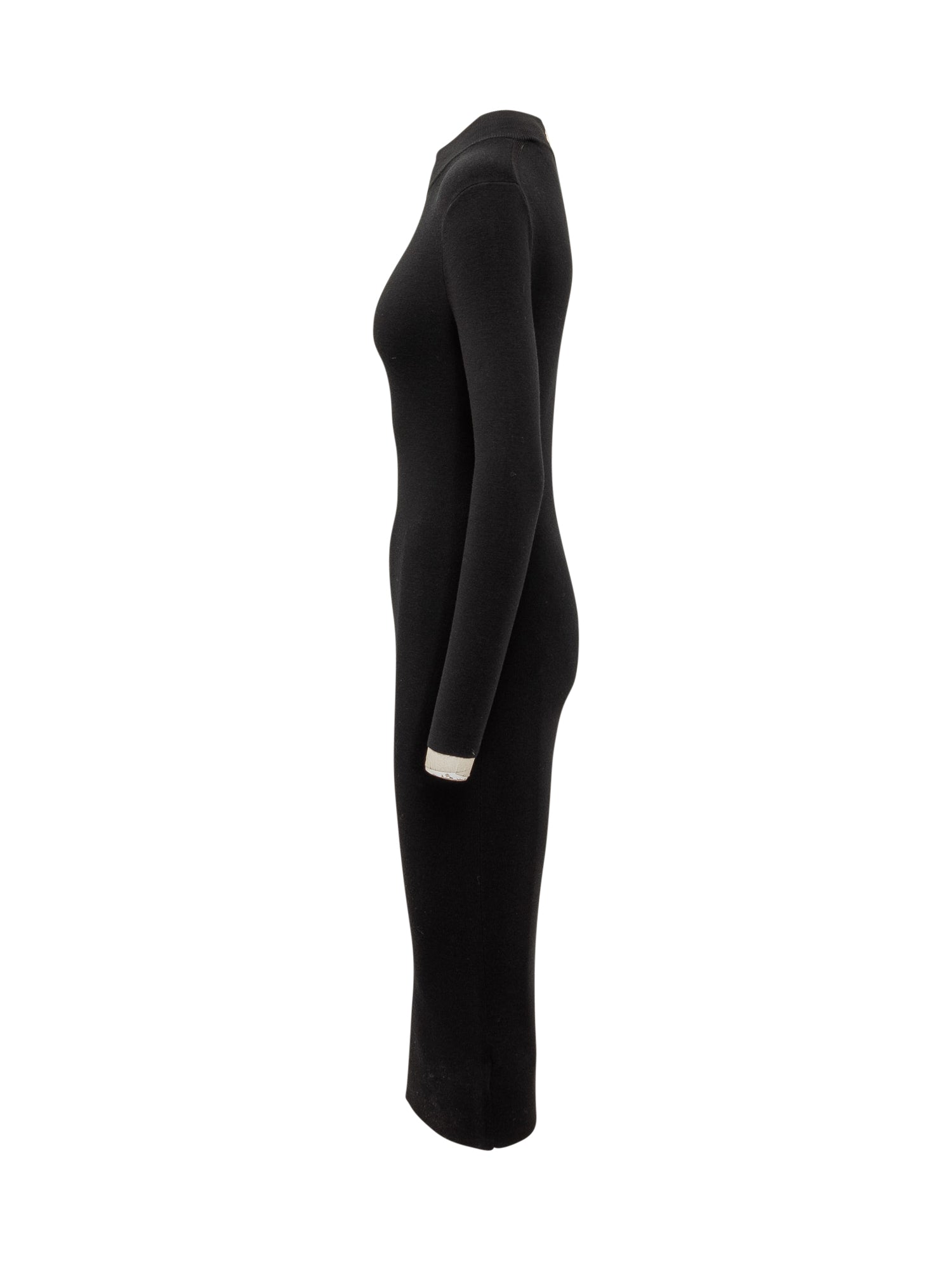 Black midi dress in wool. High neck. Zip closure on the back.