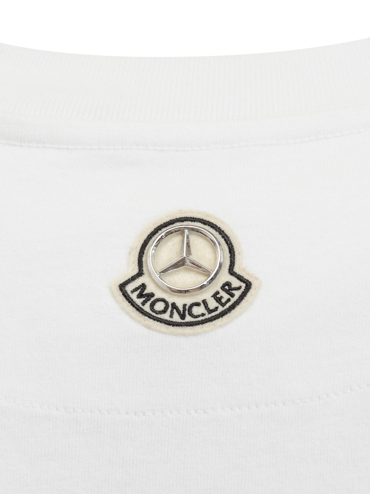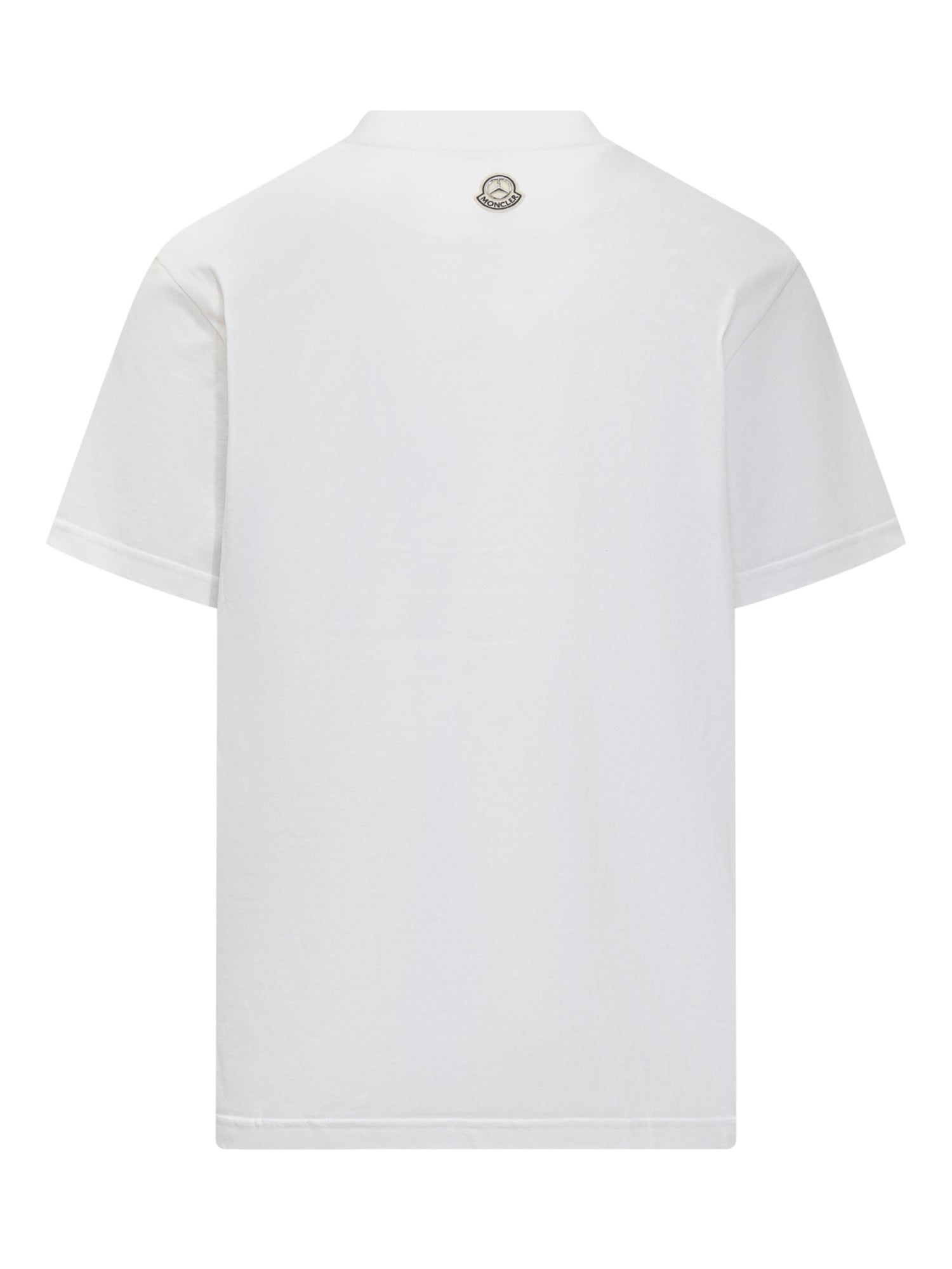 White crew neck T-shirt. Front print. Logo applied on the back.