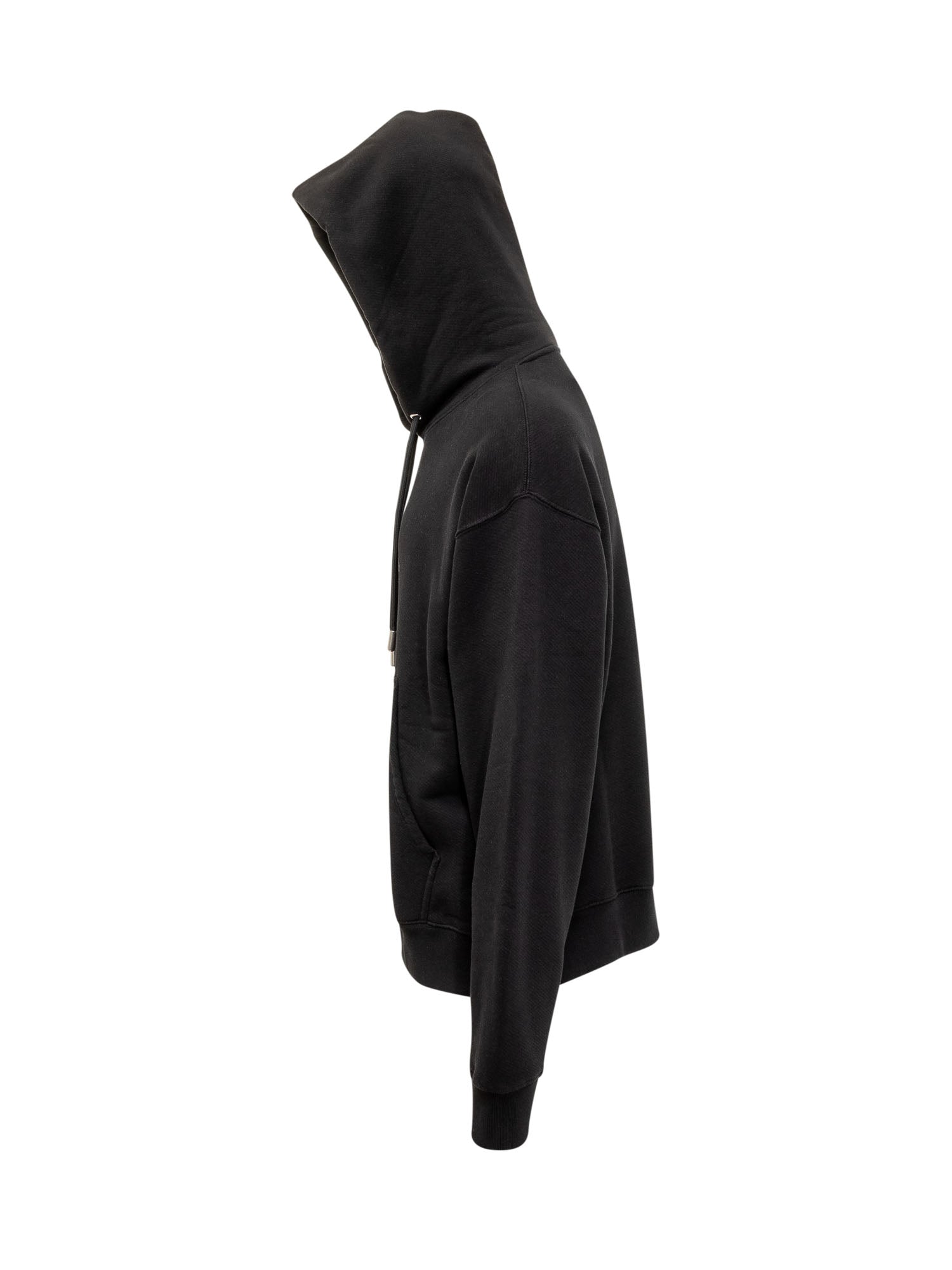 Cotton long sleeve hoodie. Drawstring hood. Ribbed hems. Maxi front pocket. Off White college-style logo printed on the front.