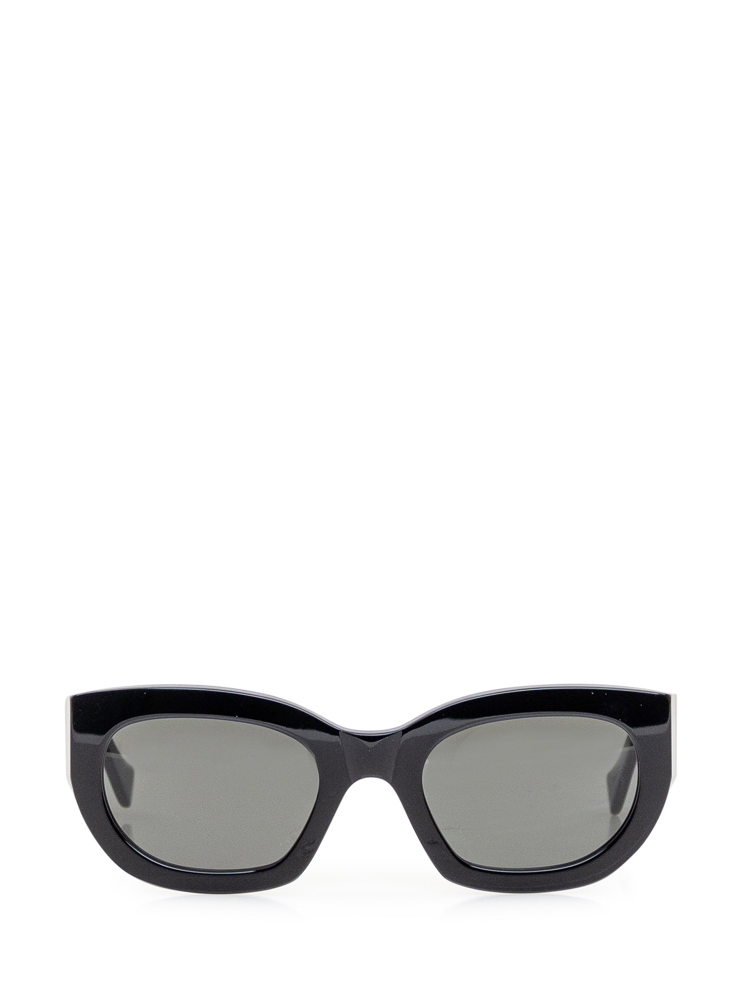 Black sunglasses. Round frame. Logo on temples.