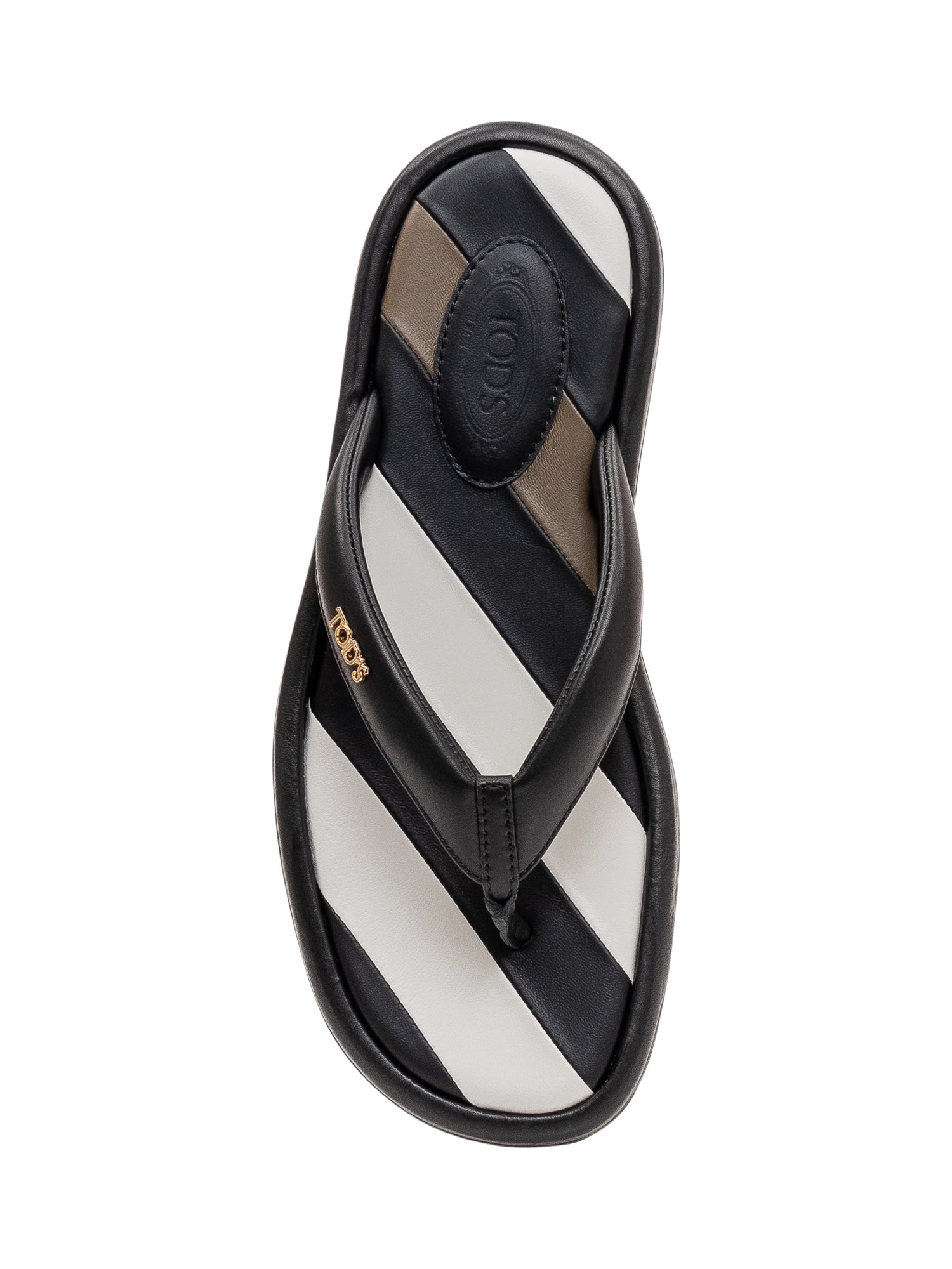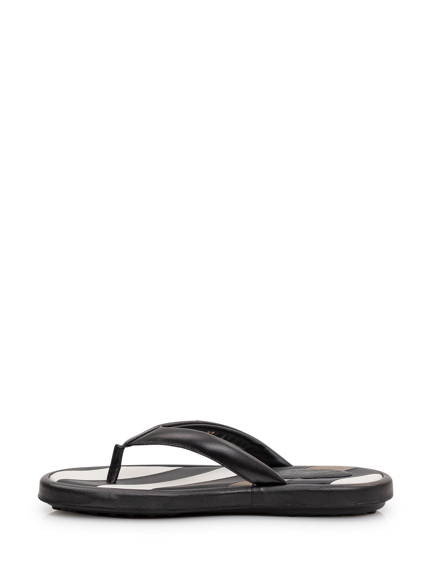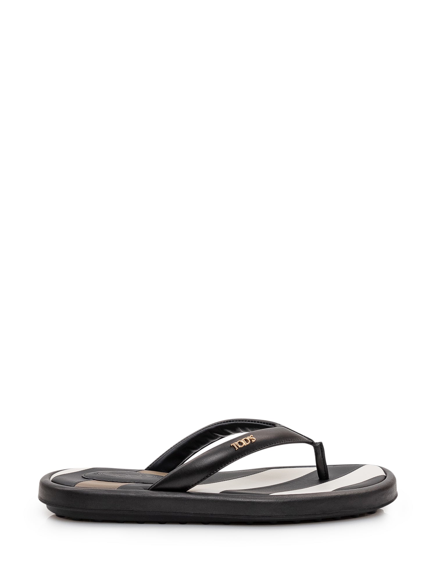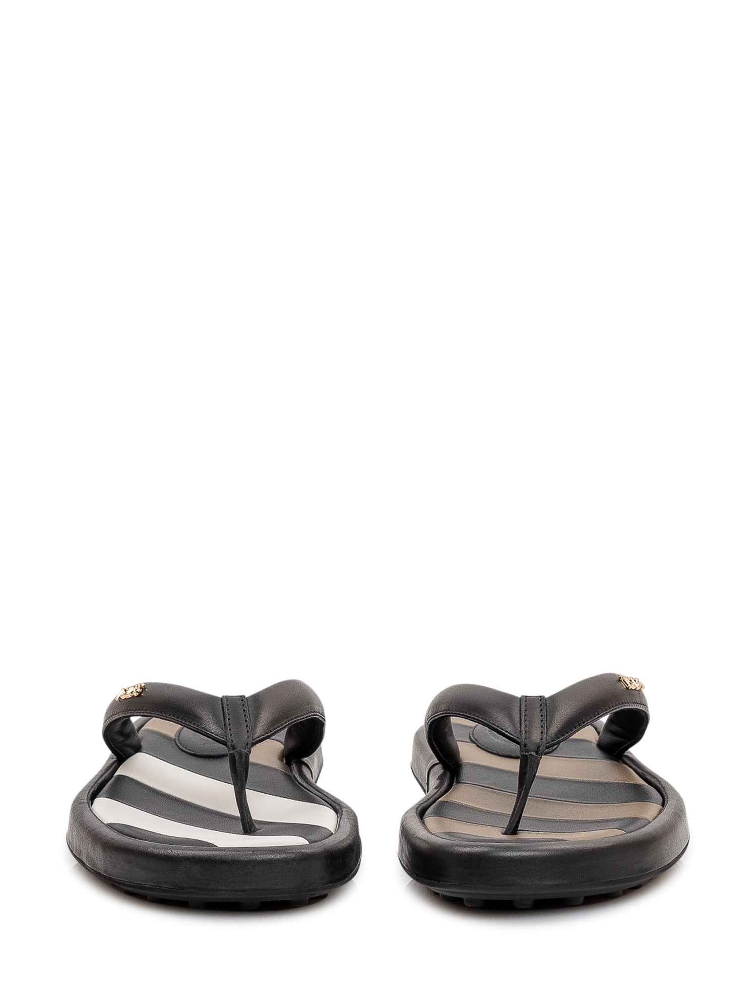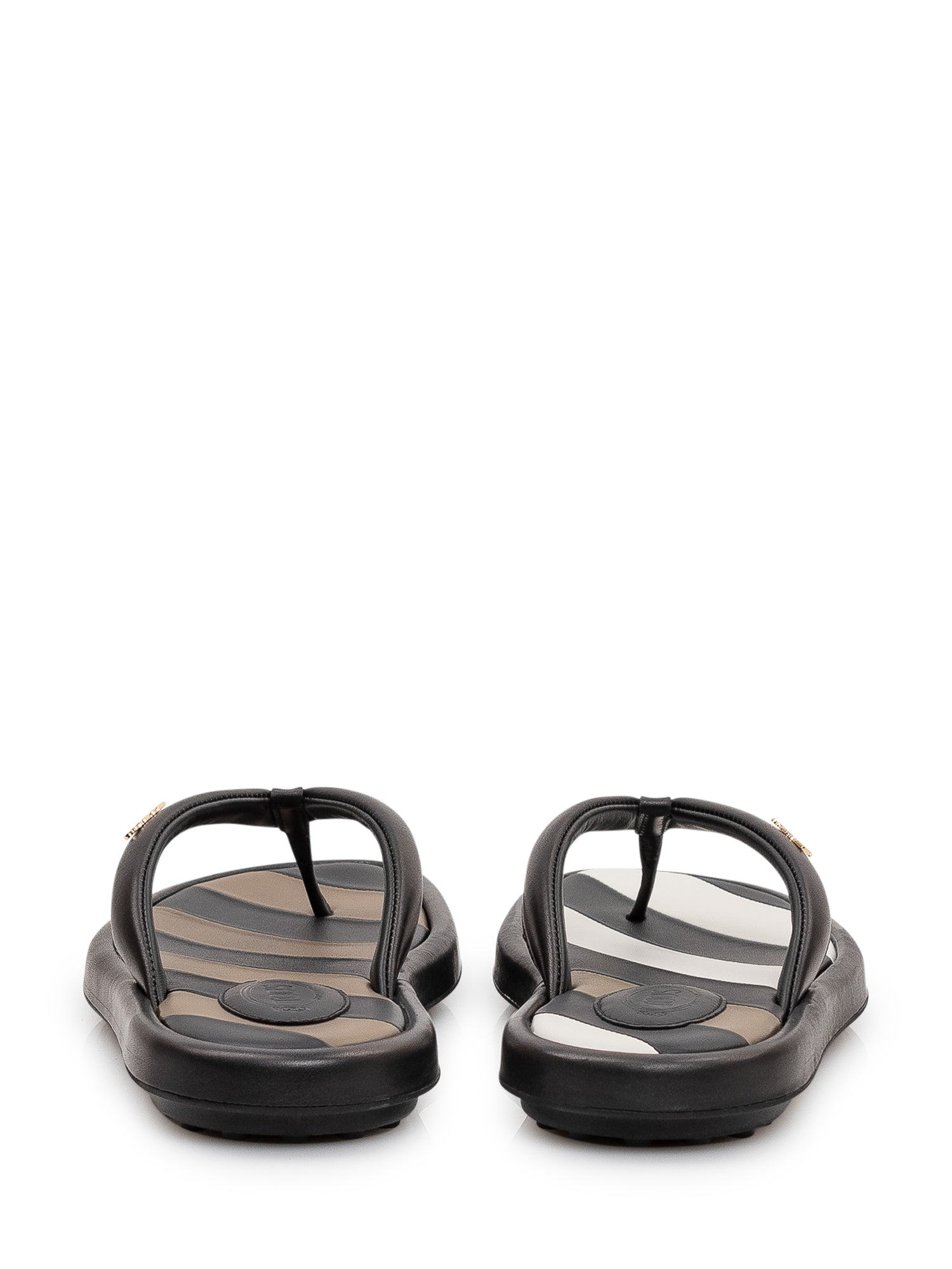 Flip flops with thick rubber sole and shaped strap with applied logo. Lightweight structure and linear design created for leisure time and the summer season.