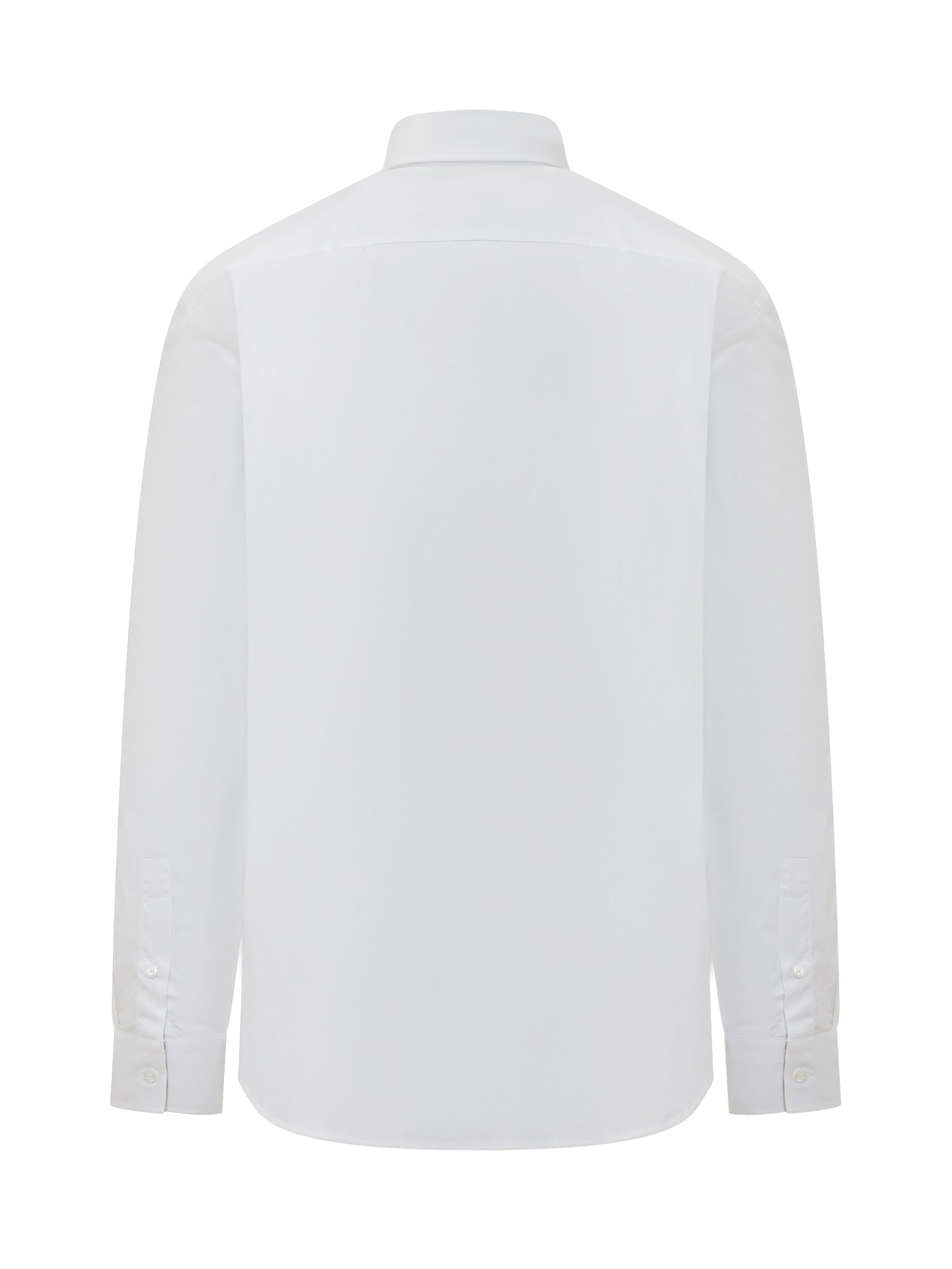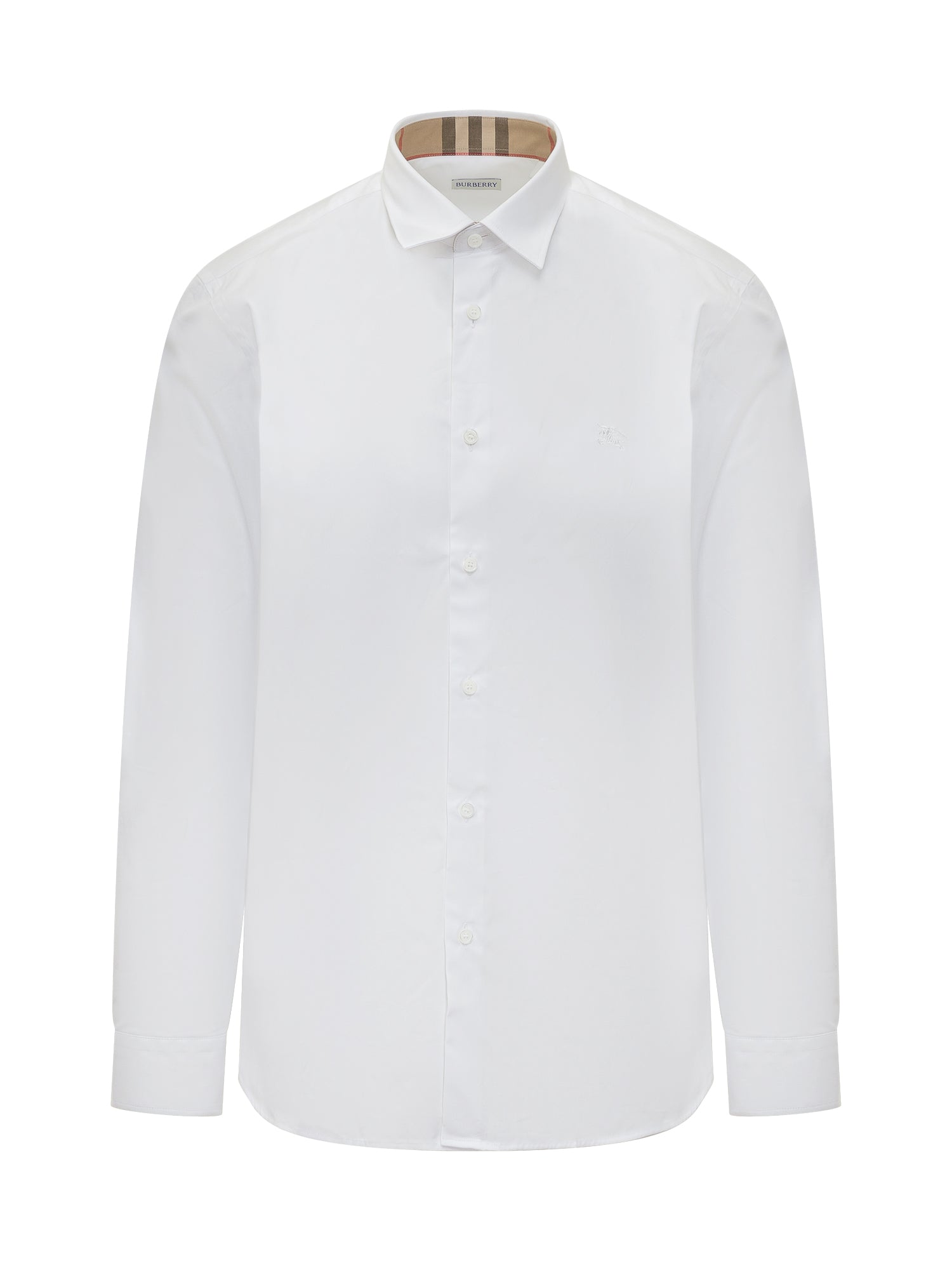 Long sleeve shirt with a clean, timeless silhouette. Enhanced by a refined inner check detail on the collar and a subtle embroidered motif on the chest.