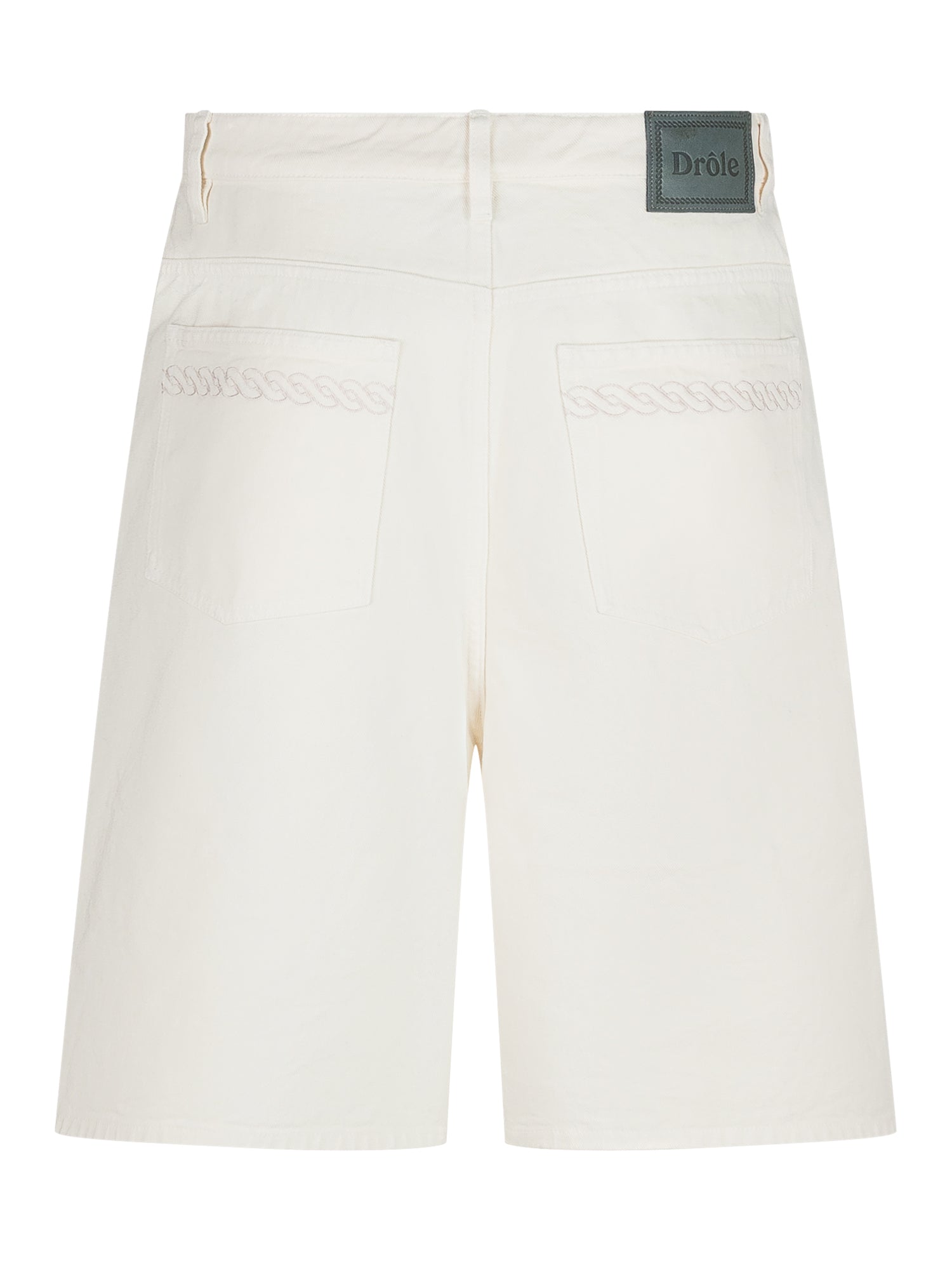 Shorts in jeans. Closure with buttons. Belt loops. Five pockets. Logo tag on the back.