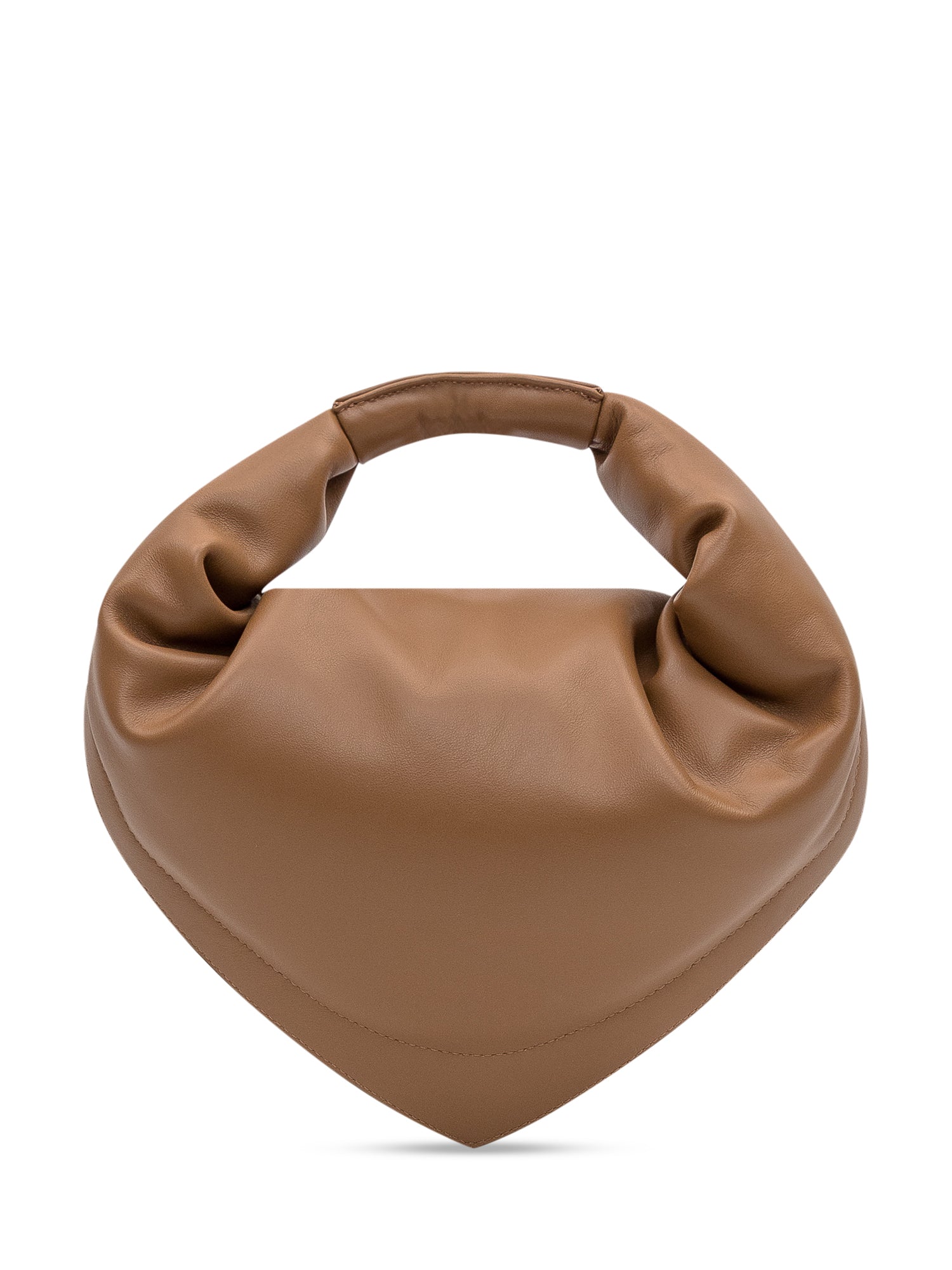 Brown leather bag. A handle. Removable shoulder strap. Closure on the back with zip. Internal padding.