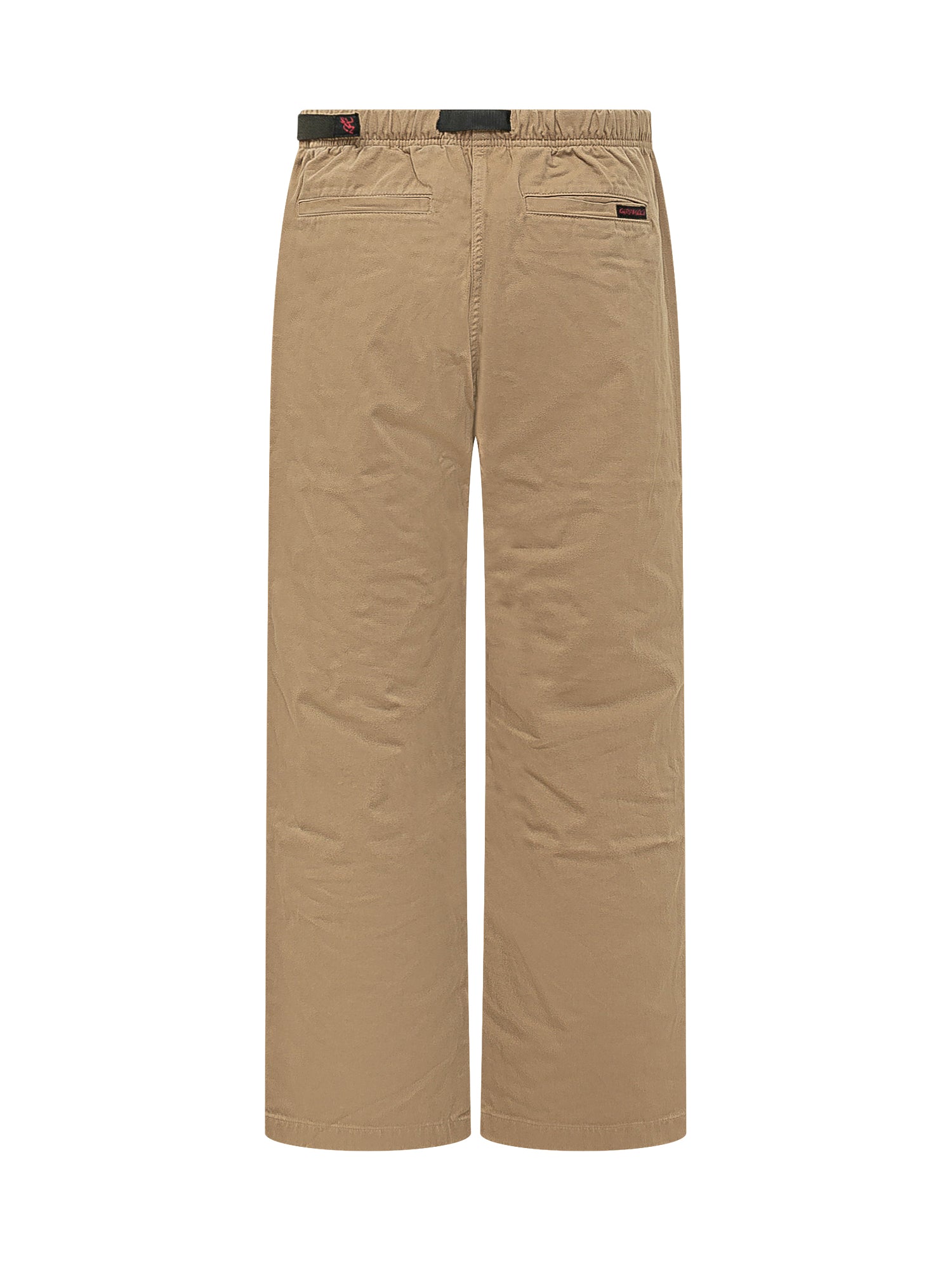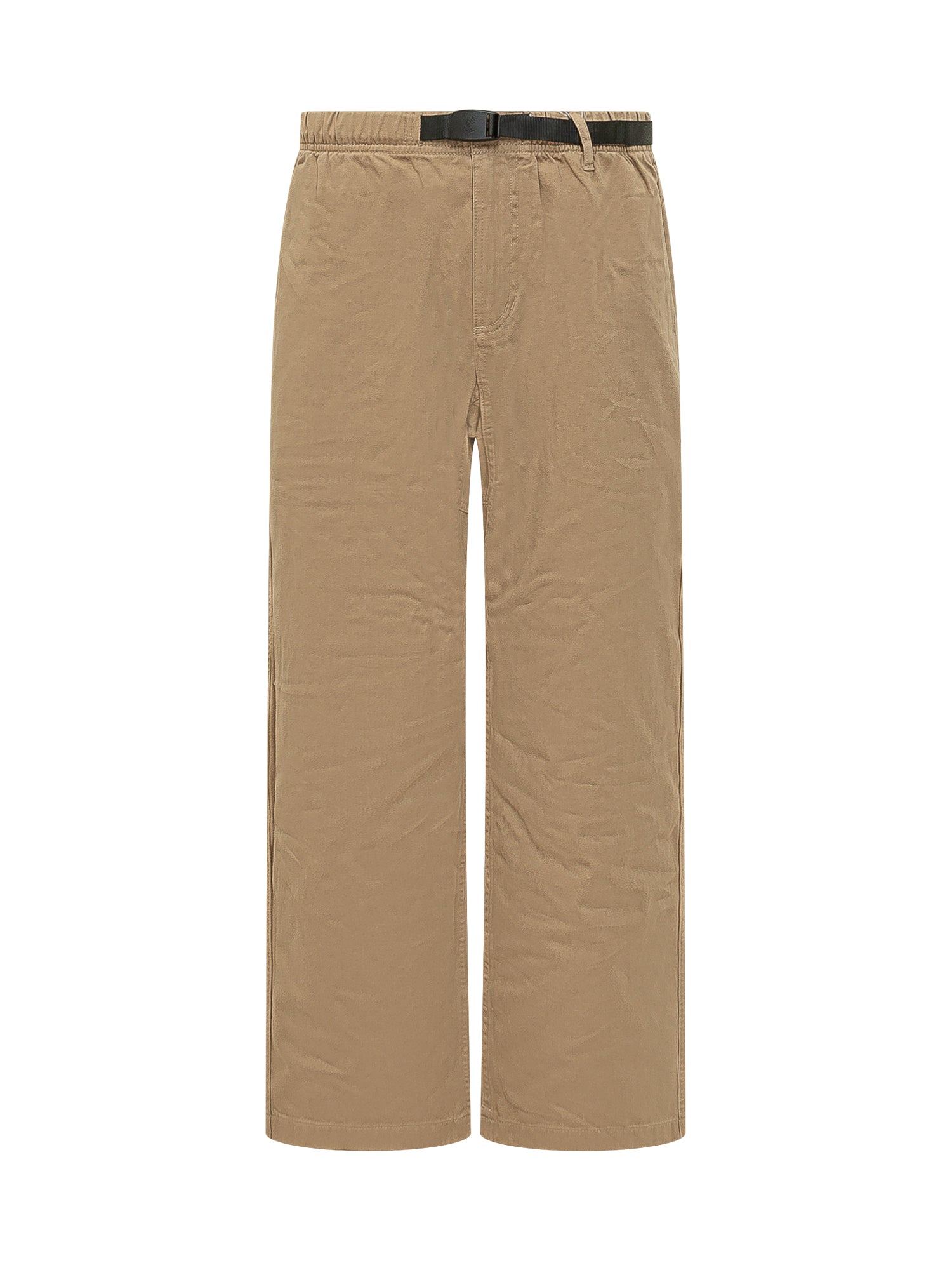 Trousers with elasticated waistband and adjustable buckle belt. Side pockets and straight leg with clean cut. Functional design suitable for everyday wear.