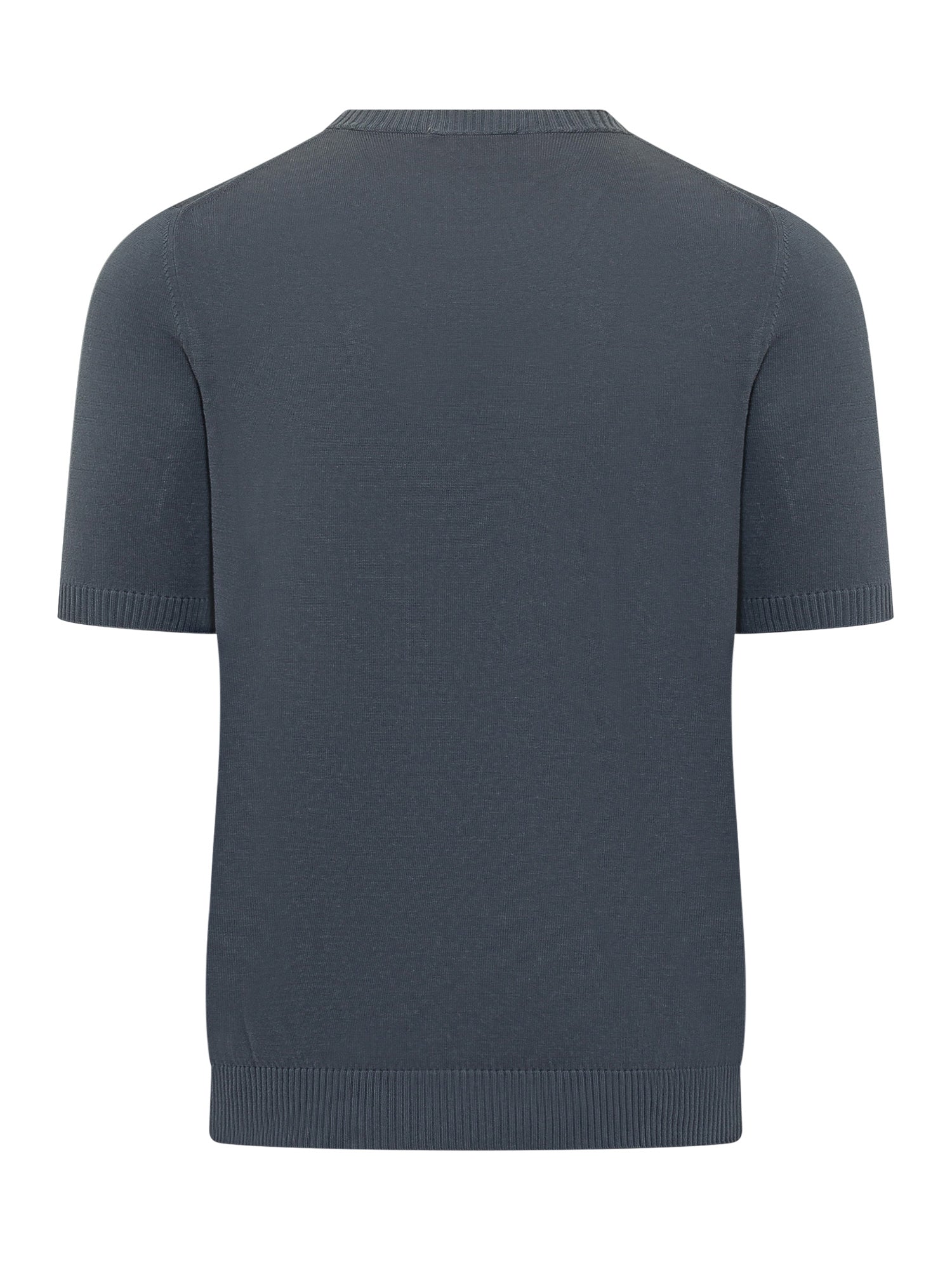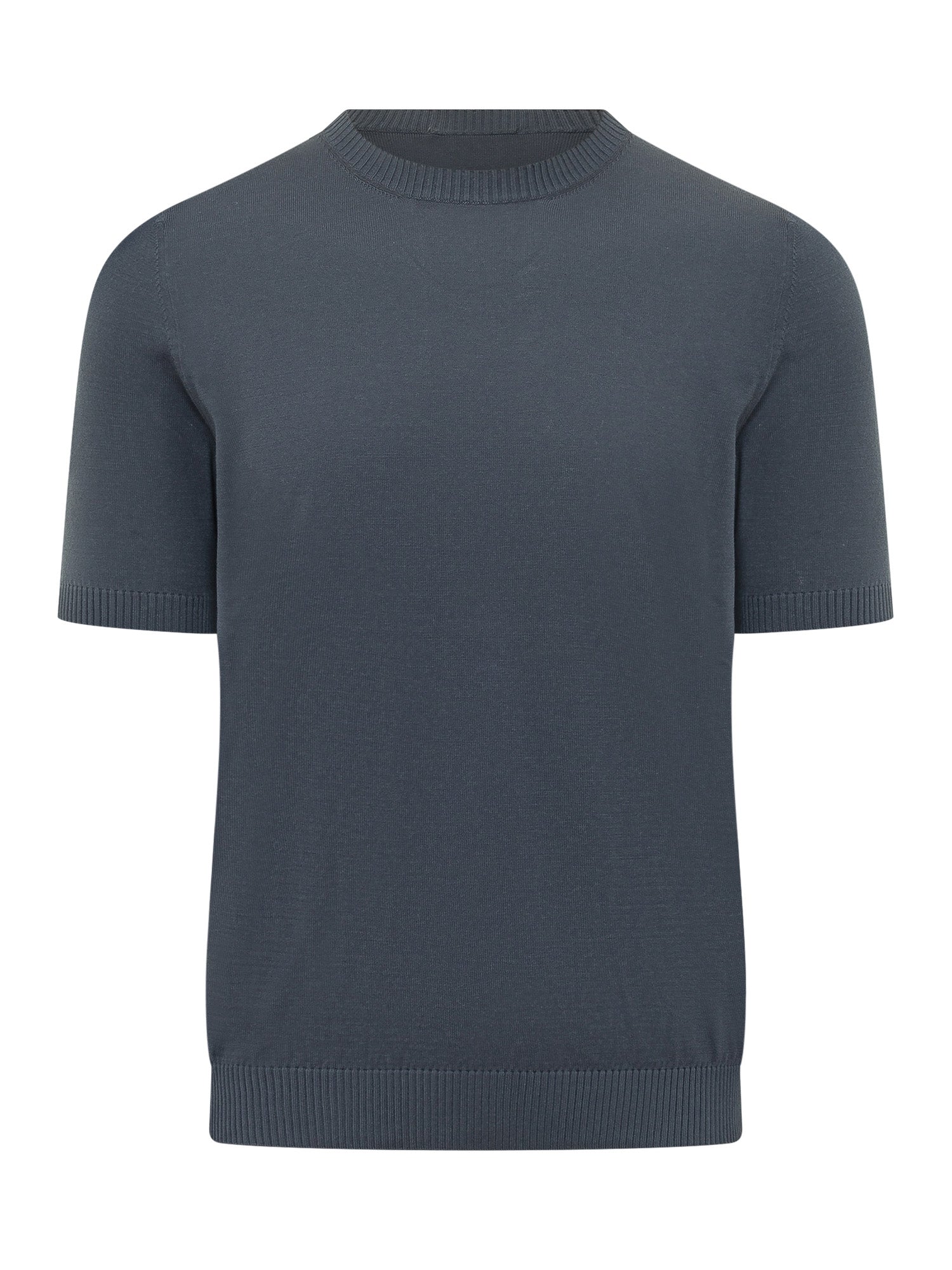 Fine knit crew neck short sleeve sweater, clean design with regular fit, ribbed trims on neck sleeves and hem.