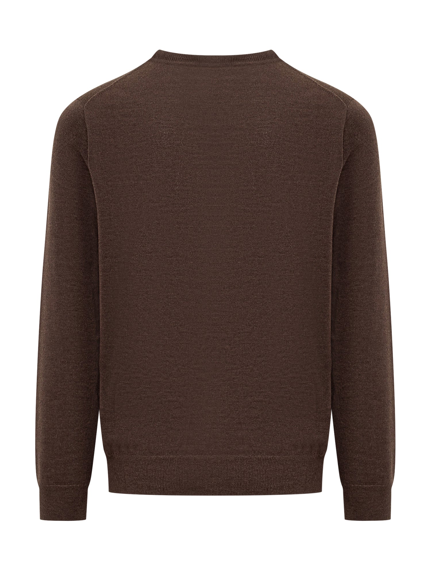 Long sleeve crew neck pullover. Ribbed hems. Embroidered logo on front.