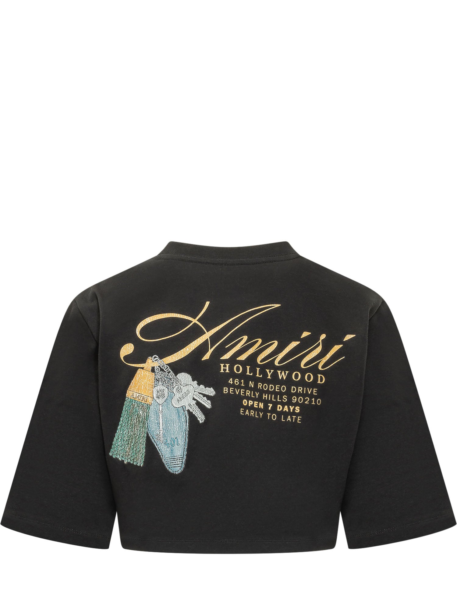 Cropped Short-sleeve T-shirt with crew neck and waist length cut. Front graphic print with logo and decorative detail. Regular fit ideal for contemporary outfits with dynamic appeal.