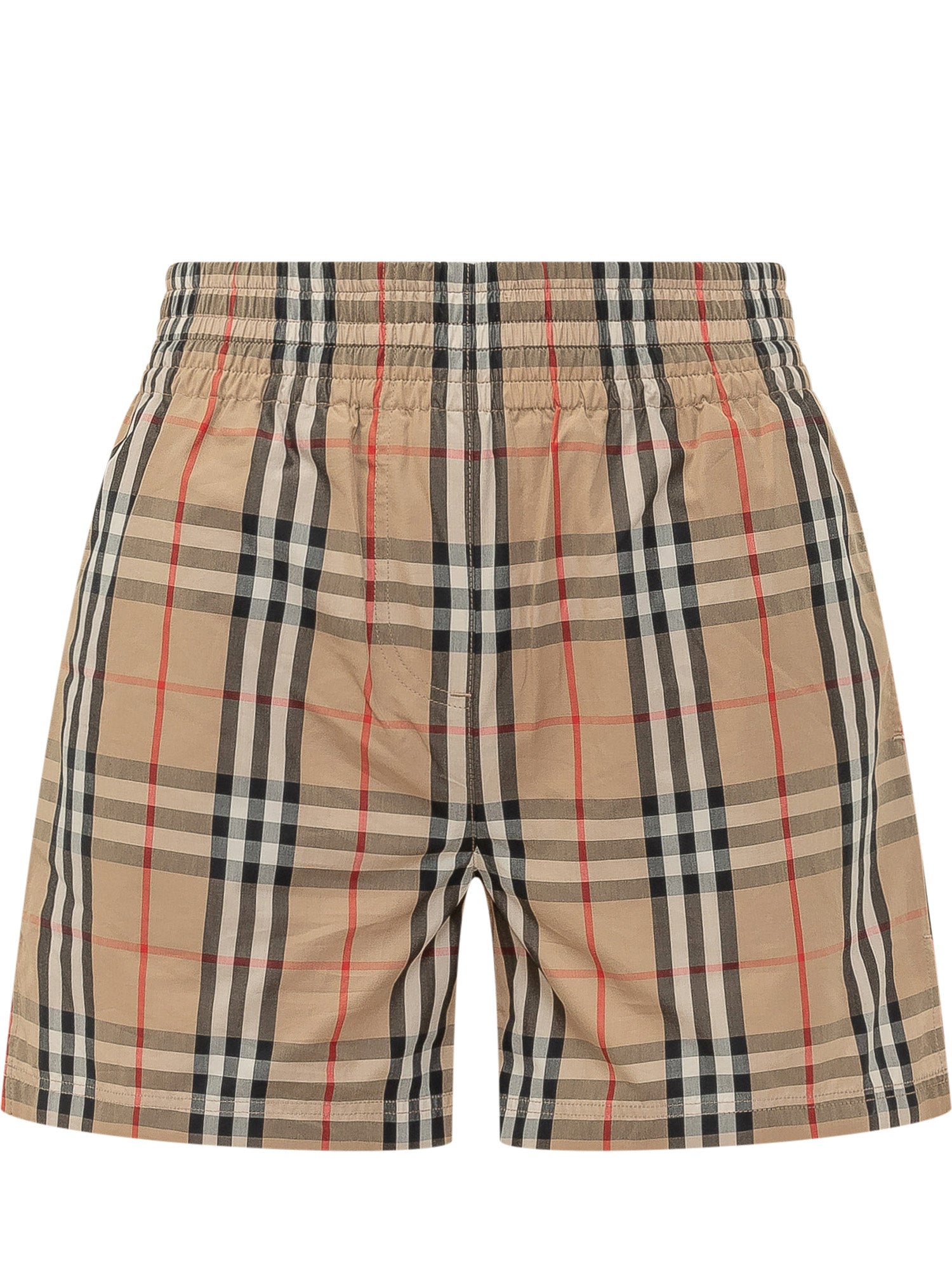 Cotton shorts featuring an iconic check pattern, elasticated waistband for comfort and ease. Clean silhouette with above-the-knee length.