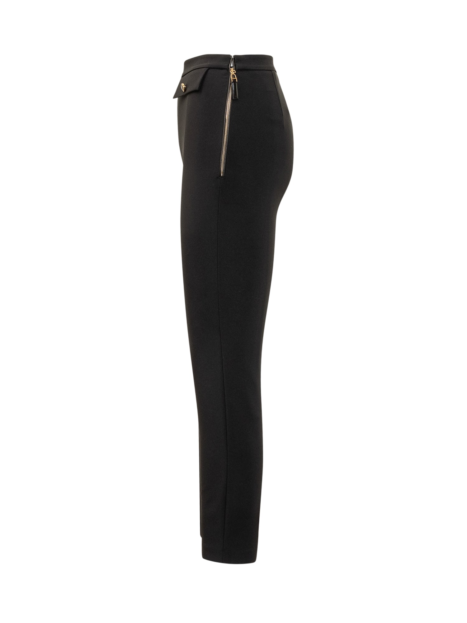 Elisabetta Franchi black skinny pants with decorative buttons at the waist. Sleek and elegant silhouette, side invisible zip closure ensures a flawless fit.