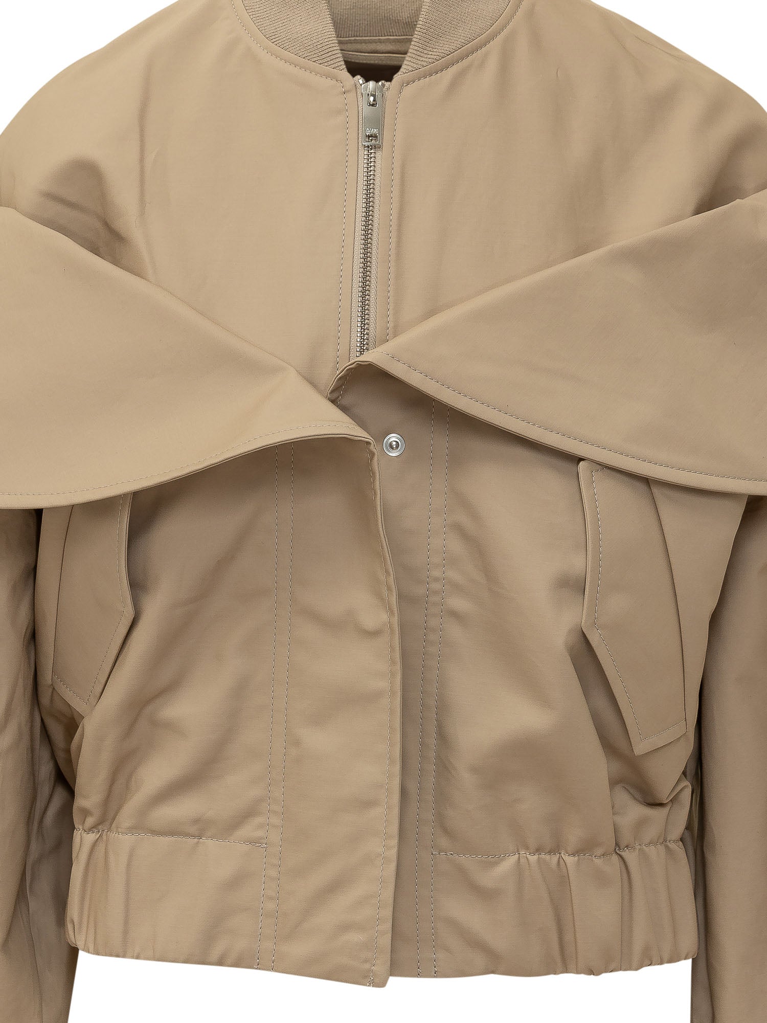 Cropped bomber jacket with high neck, zip closure and front flap pockets.