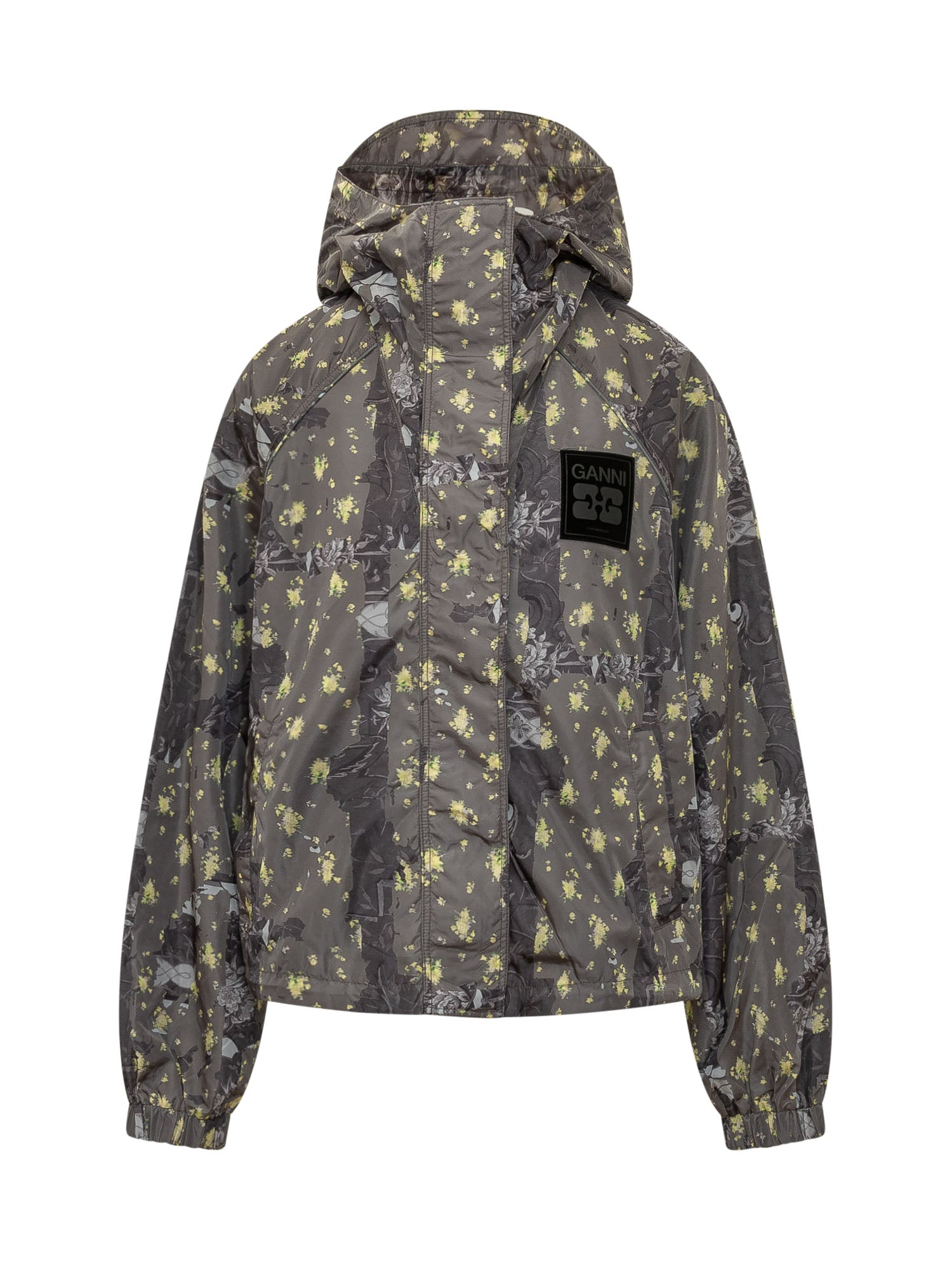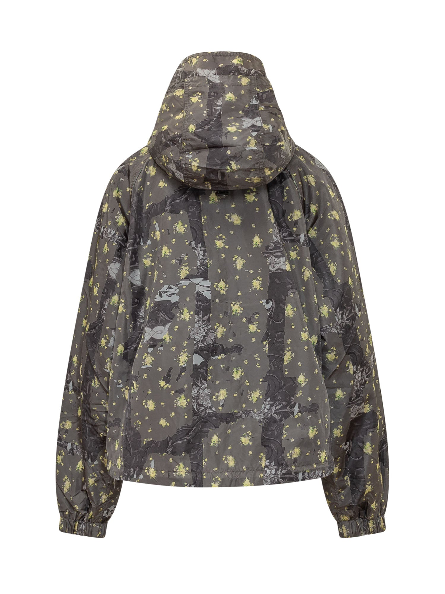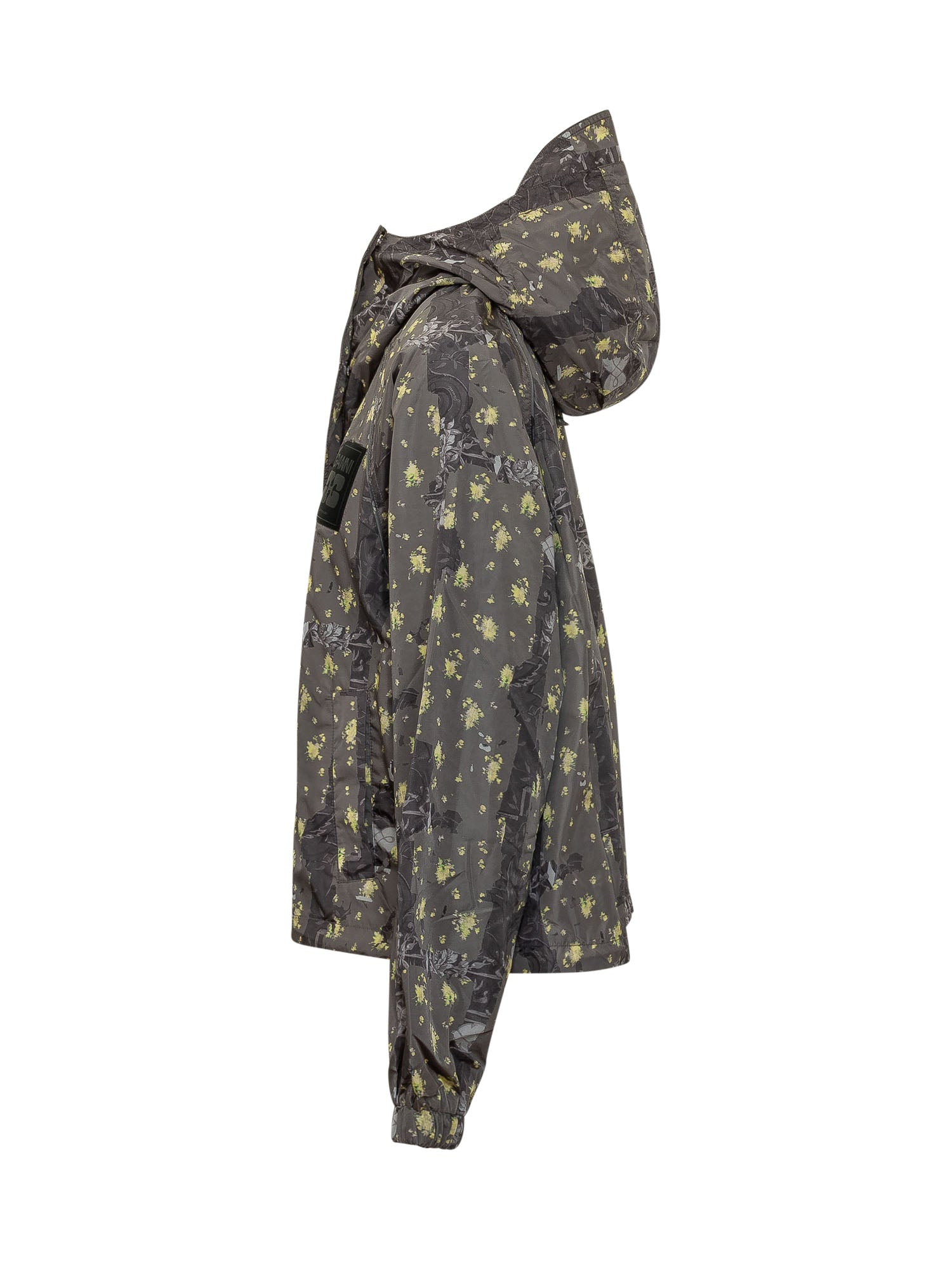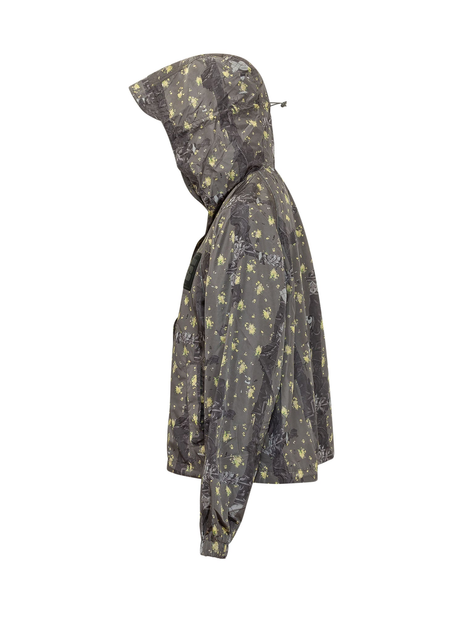 Lightweight jacket with hood, zip closure and front pockets, all over print.