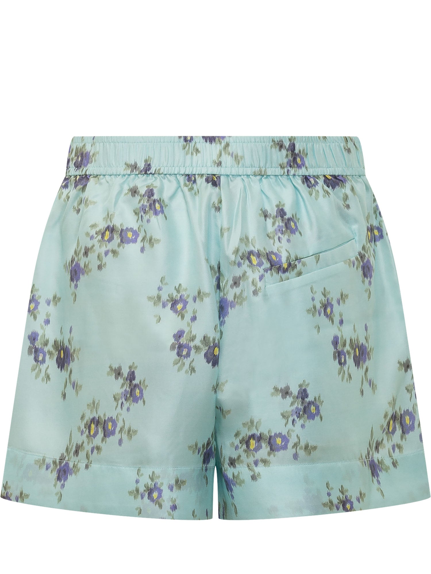 Shorts with elastic waistband, floral print and relaxed cut with visible seams