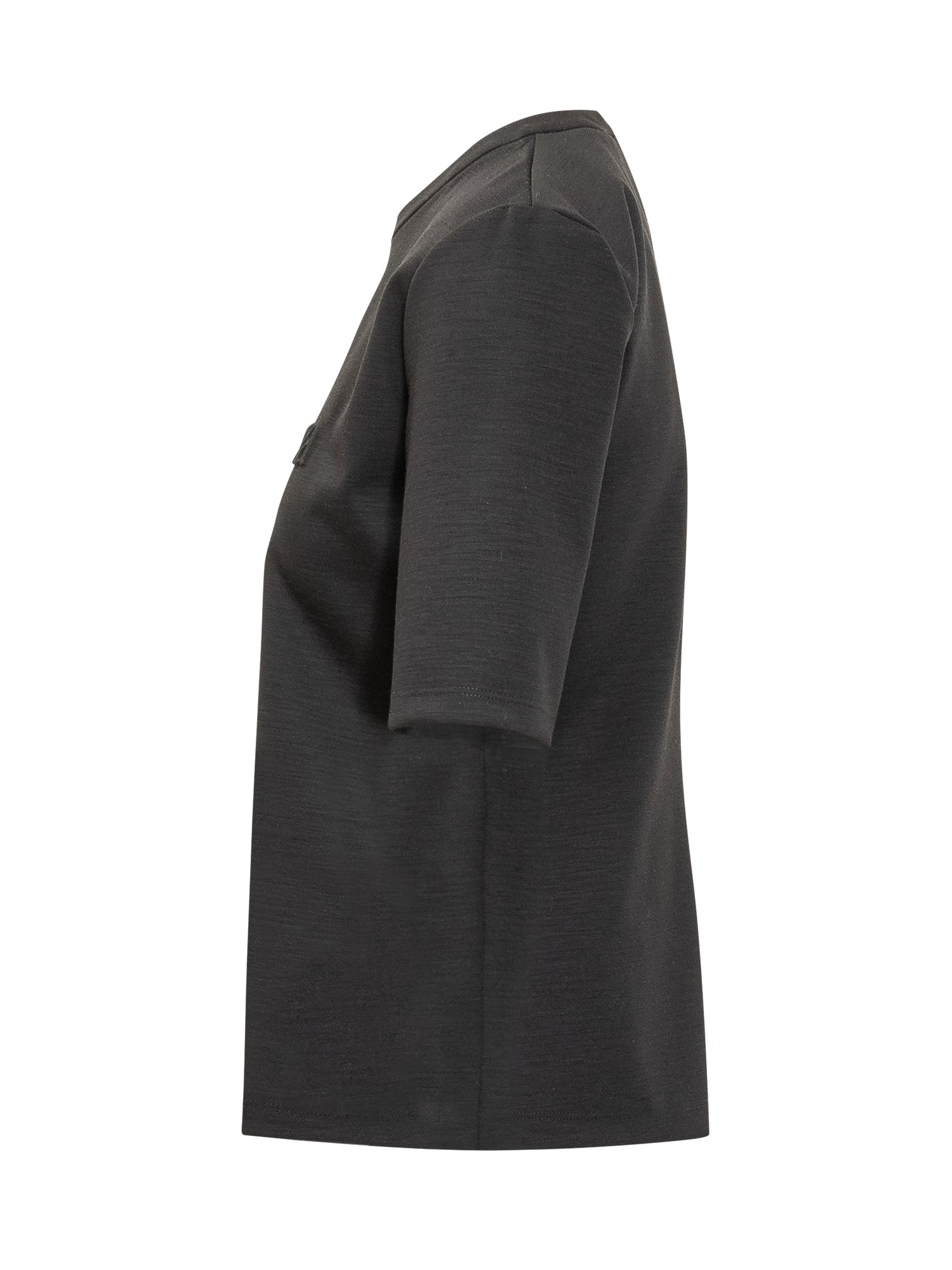 Black T-Shirt. Short sleeves. Crew neck. Embroidered logo. Back zip.