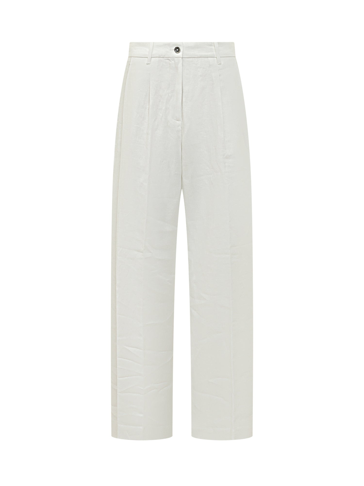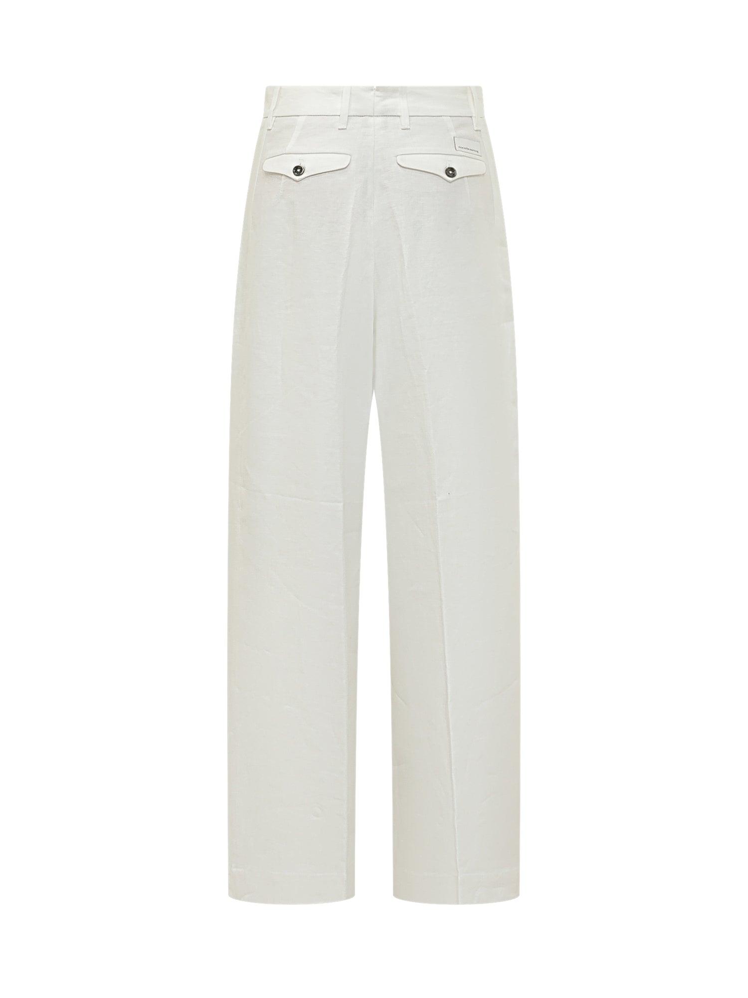 Chino pants with front closure and belt loops. Wide leg and soft line for a contemporary silhouette.