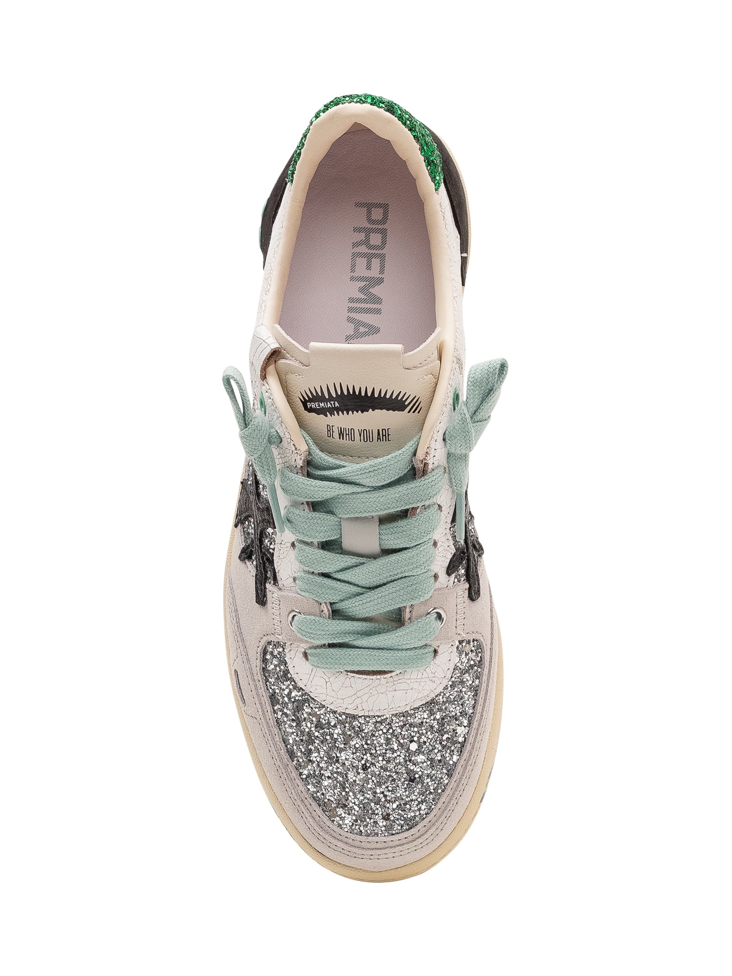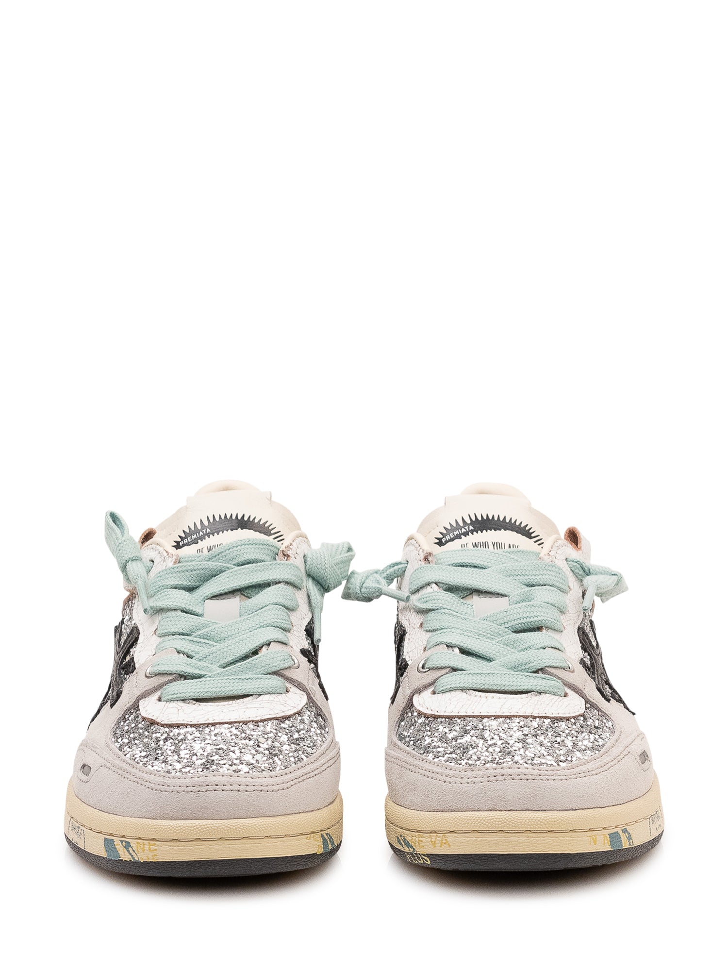 Sneakers with lace up closure, contrasting panels and flat sole.