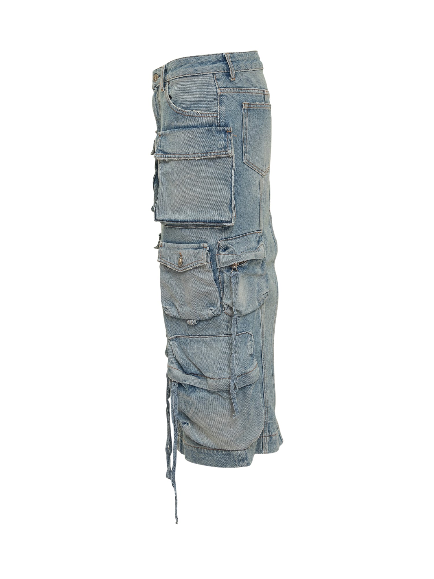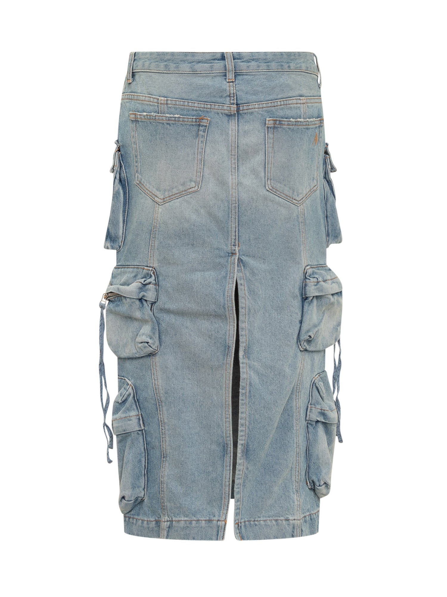 Multi-pocket midi skirt. Fifth pleated pocket and logo embroidery. Button and zipper closure. Blue color.