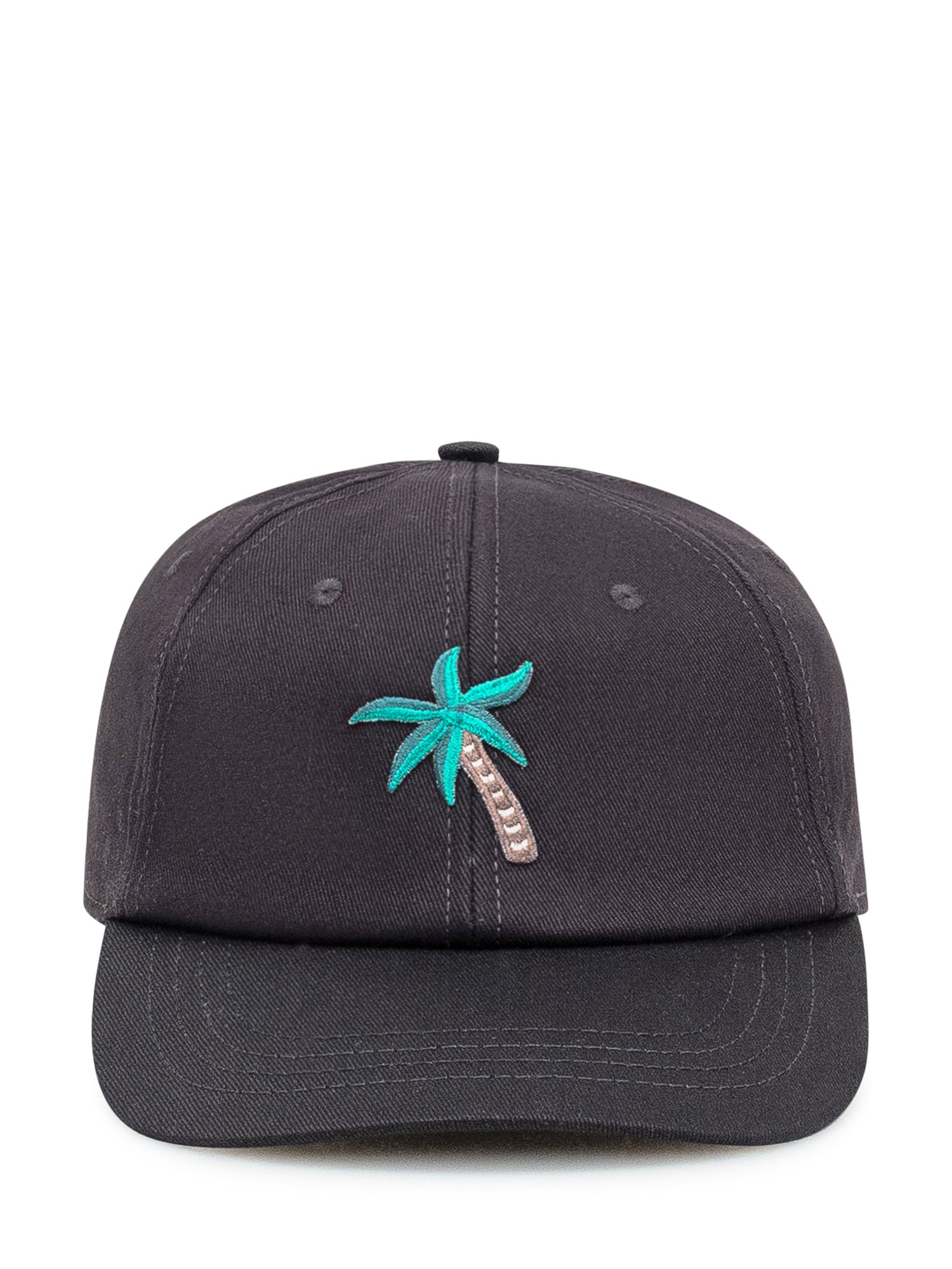 Black cotton cap by Alberto Bresci featuring palm embroidery on the front.
