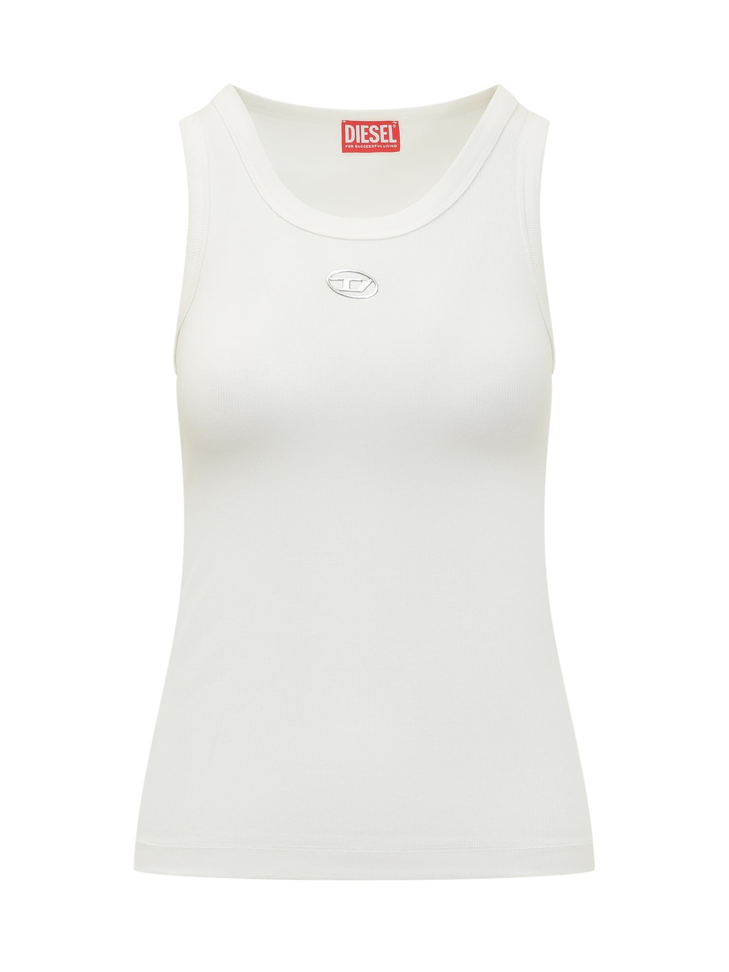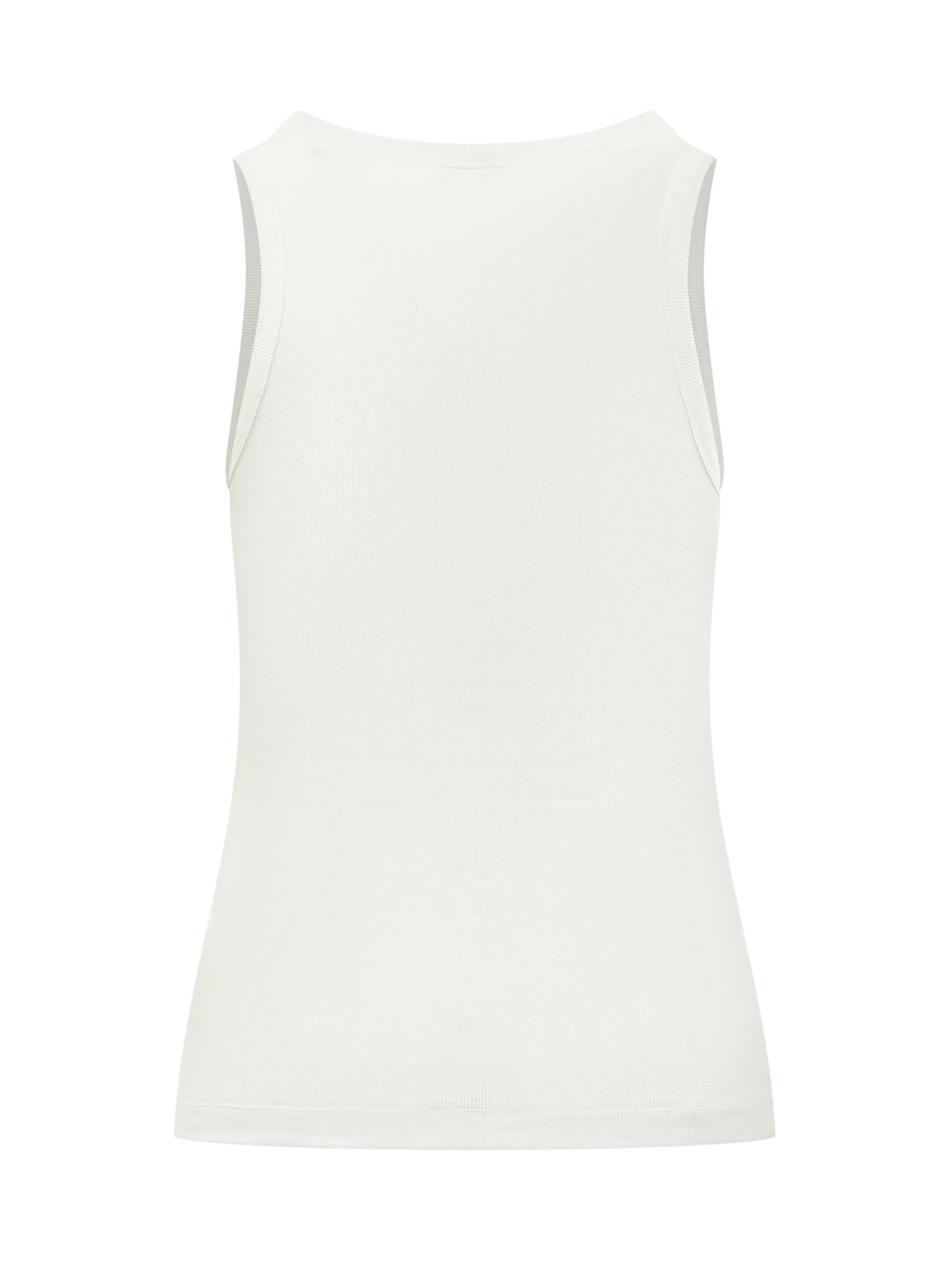 Sleeveless ribbed top with rounded neckline and front logo. Slim fit.