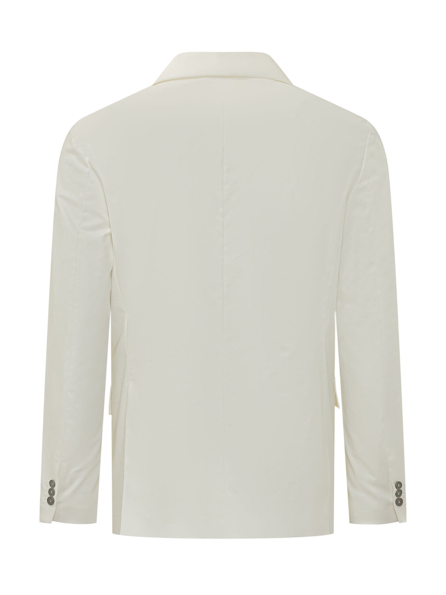 Double breasted blazer with button closure, classic lapels and front flap pockets, structured and formal design
