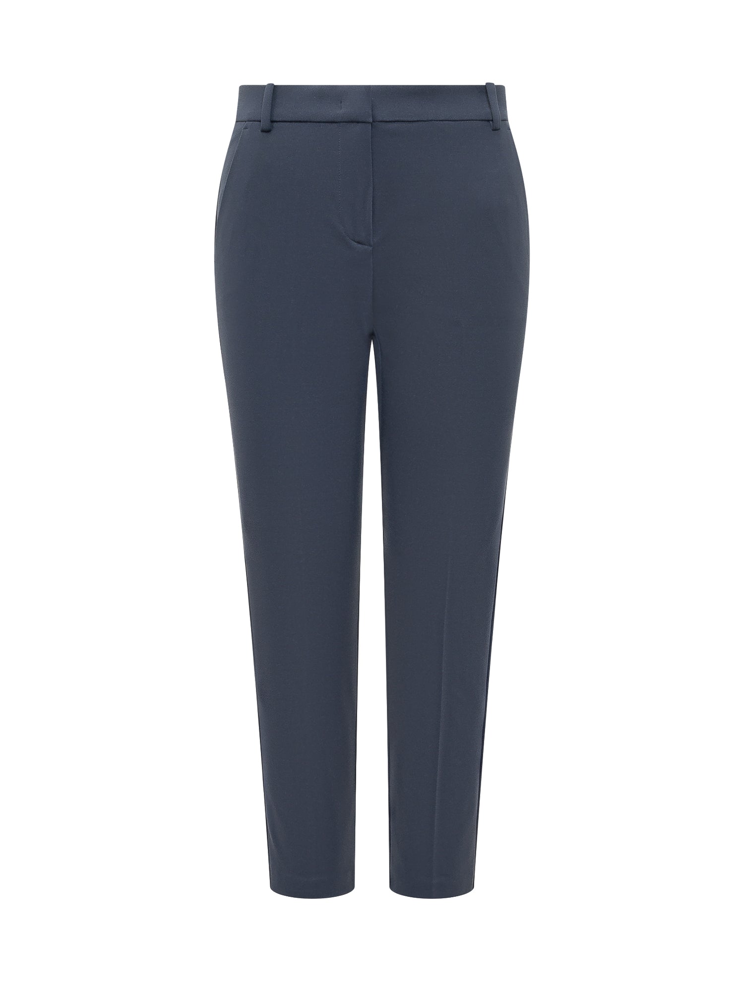 Pants with regular waist and straight leg. Front center crease and concealed closure.