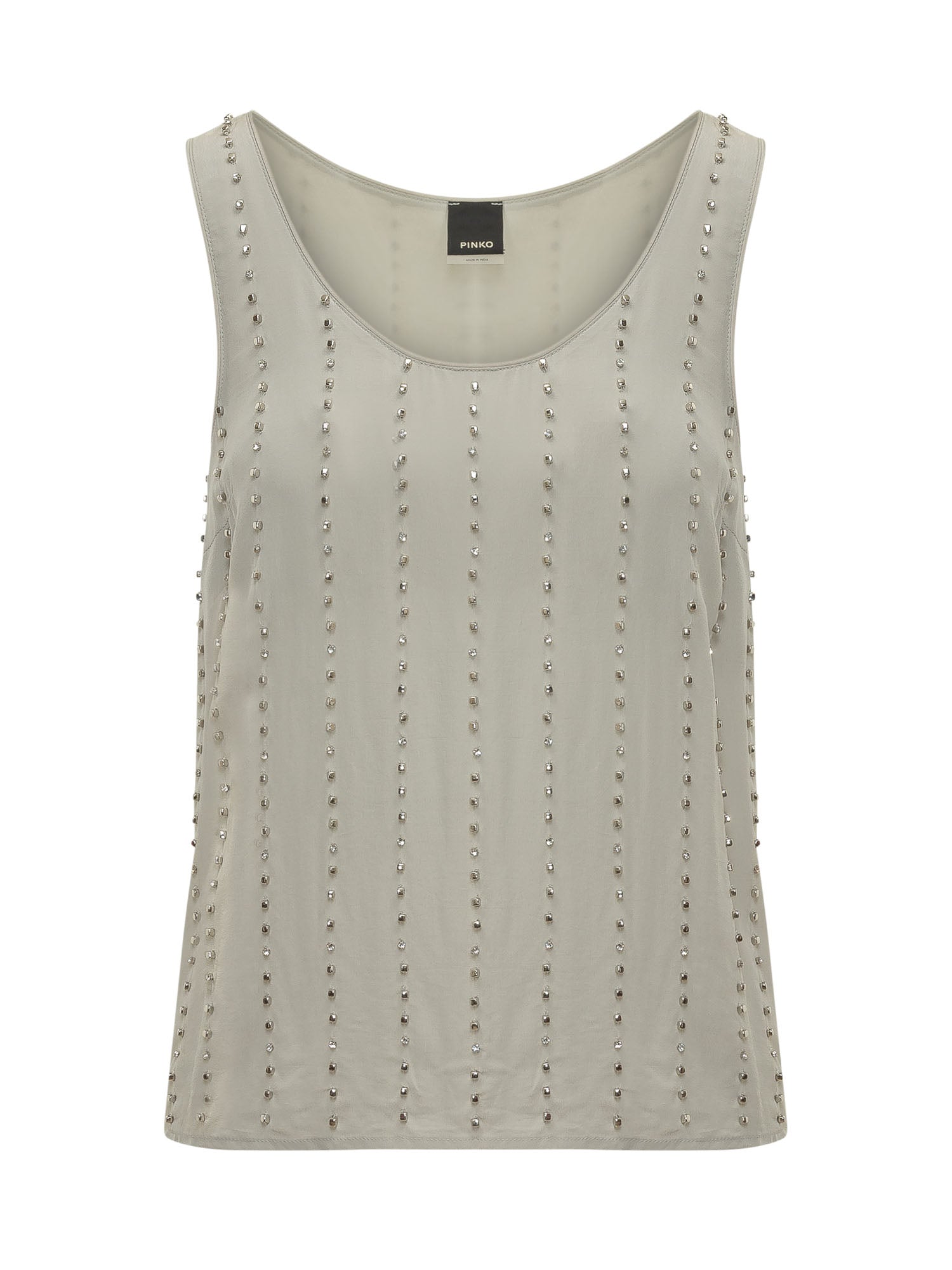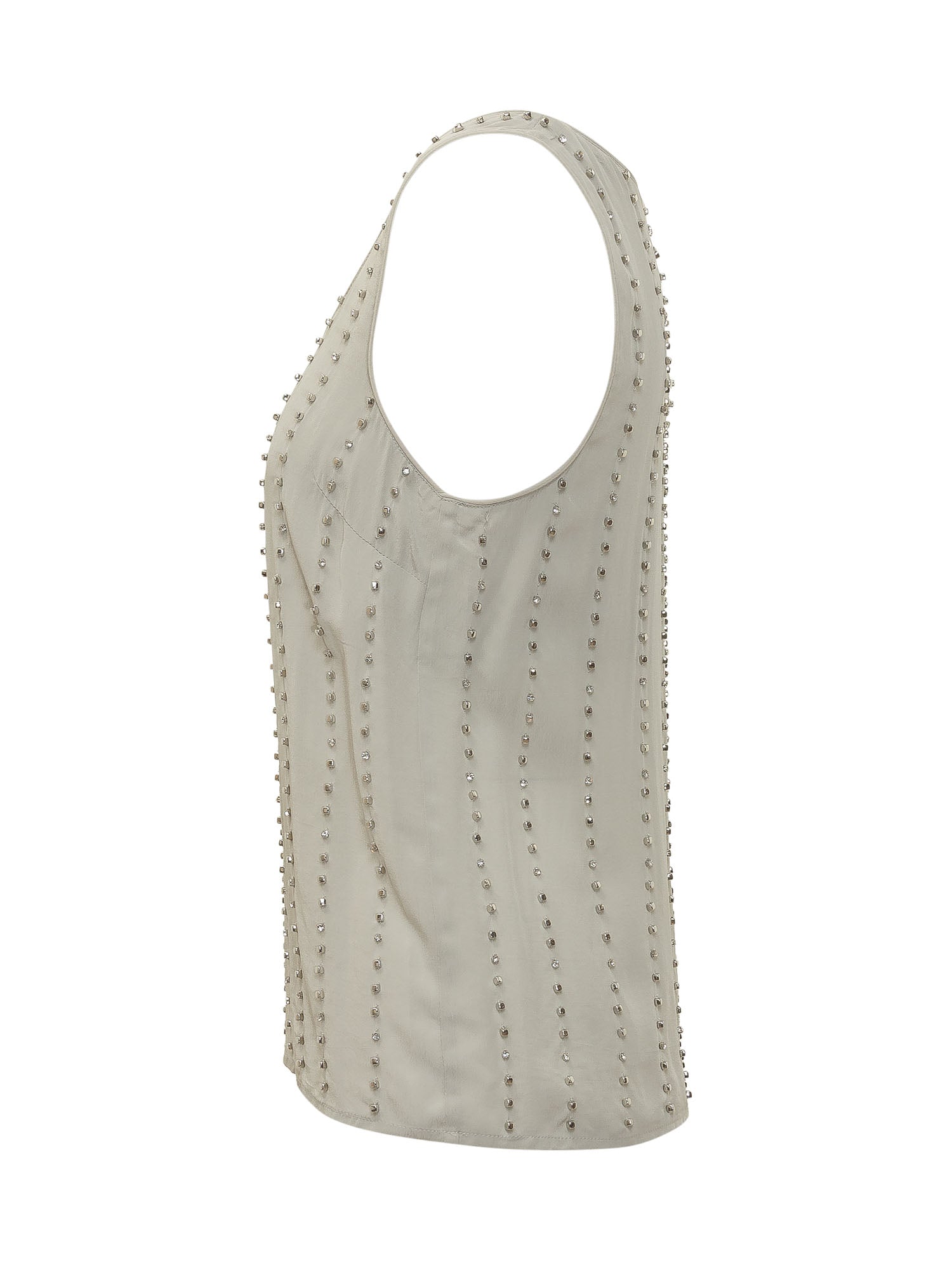 Sleeveless top with wide neckline and all over decorative embellishments, relaxed fit