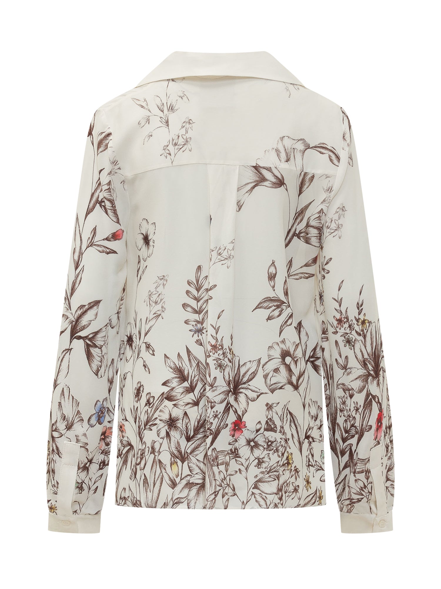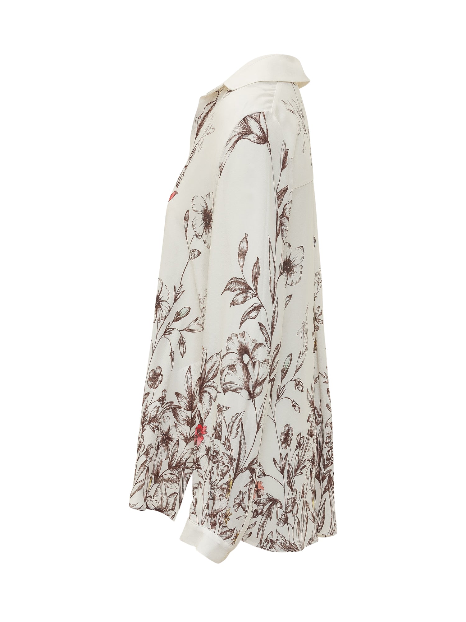 Ava shirt with a fluid silhouette, featuring a classic collar and front button fastening. The lightweight fabric highlights the all-over floral print.