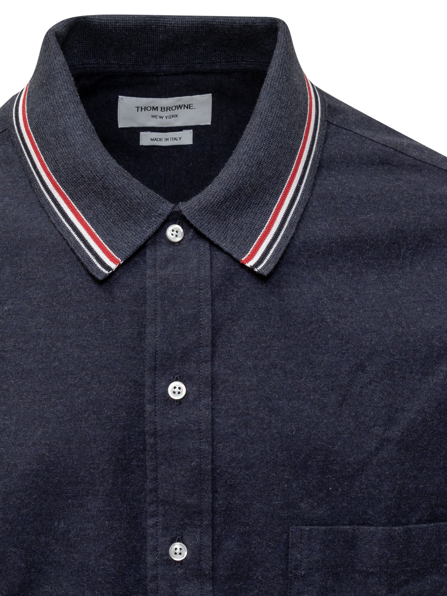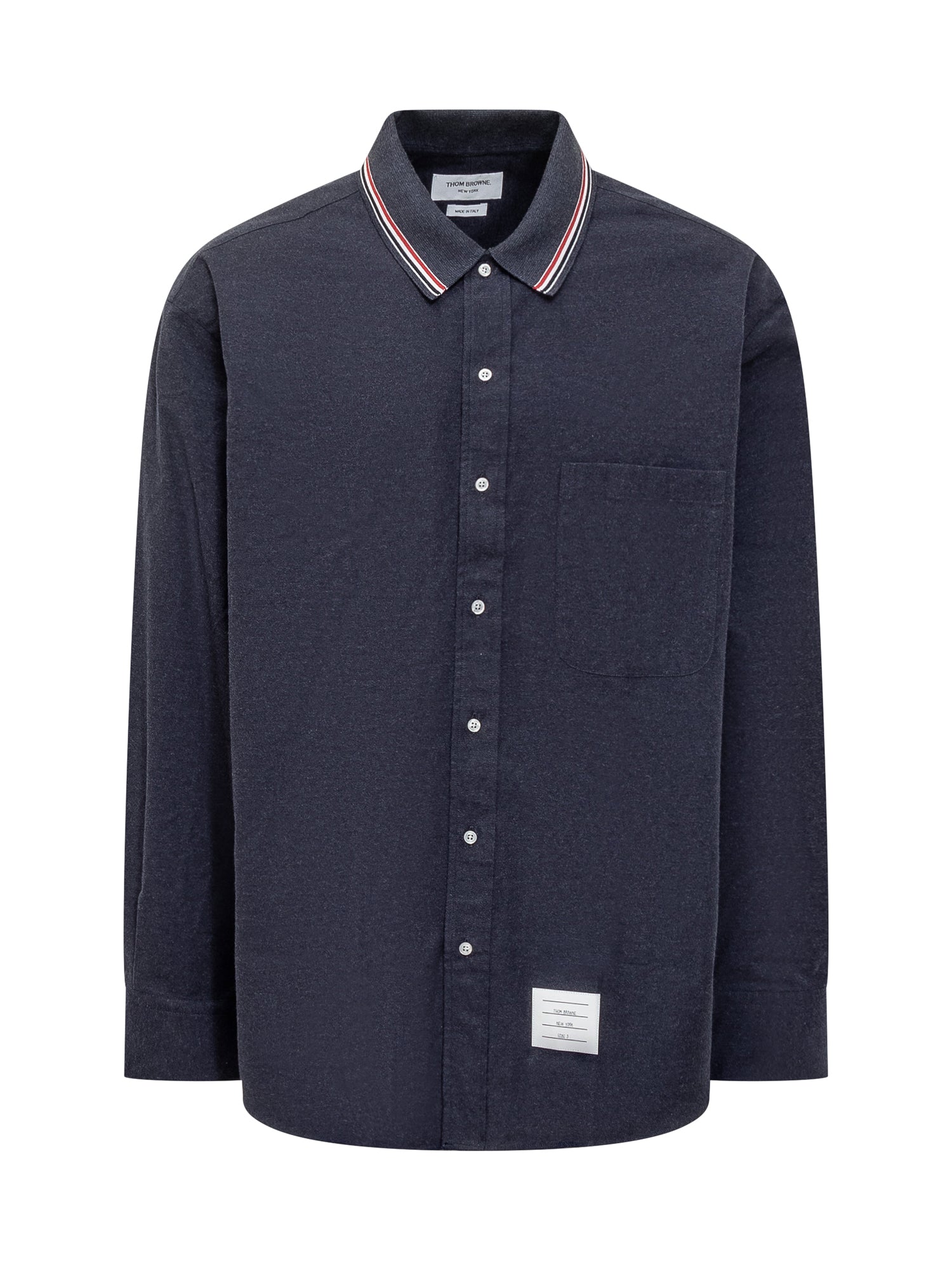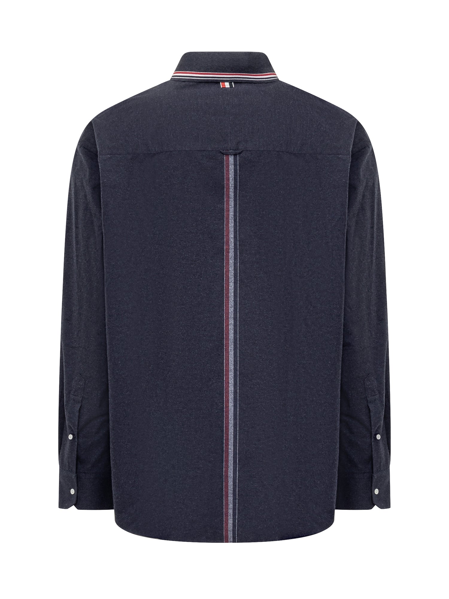 Long-sleeved oversize shirt. Classic collar. Button fastening. Button cuffs. Chest pocket. Logo patch. Tricolour label and tricolour band on the back.
