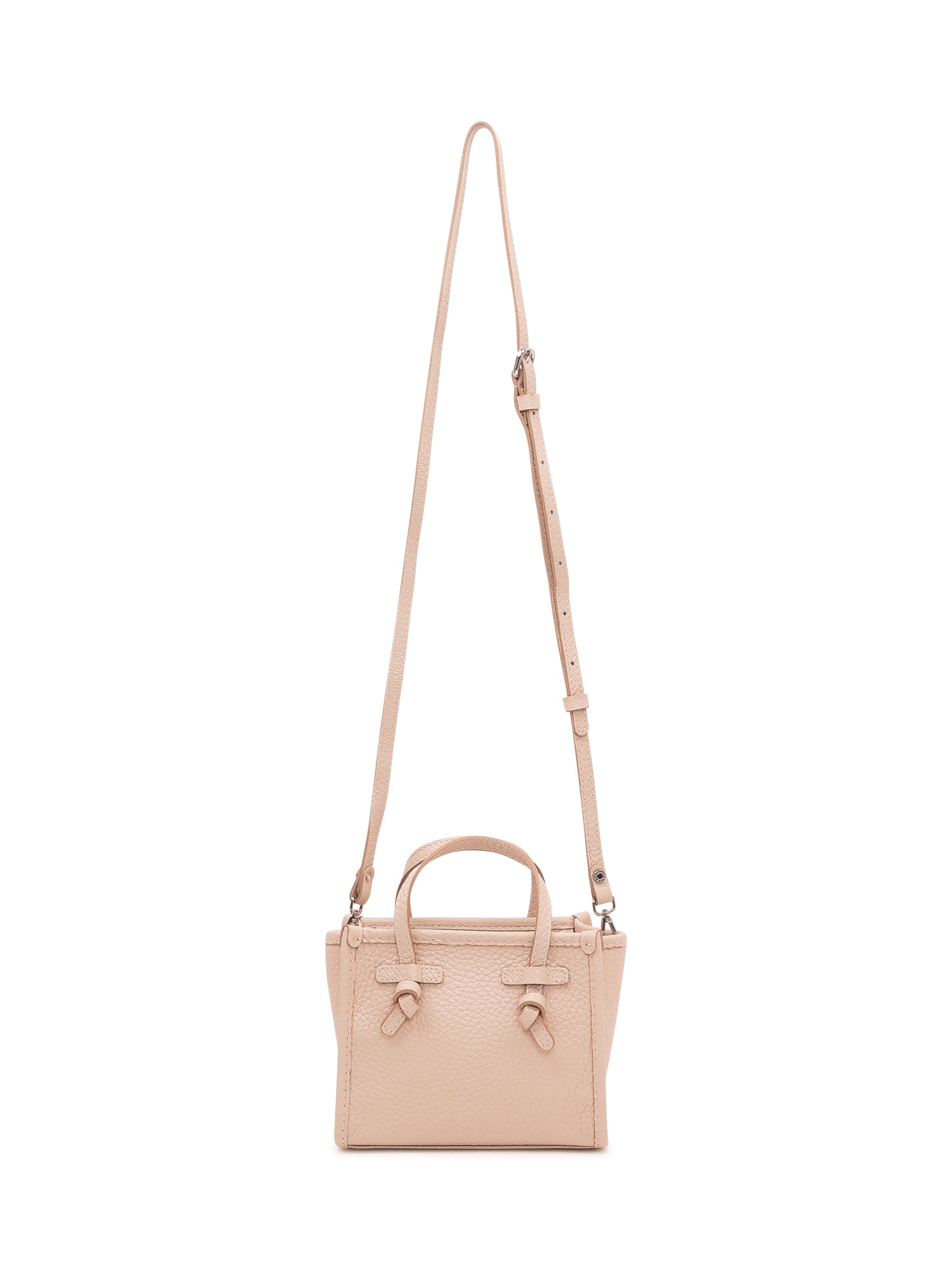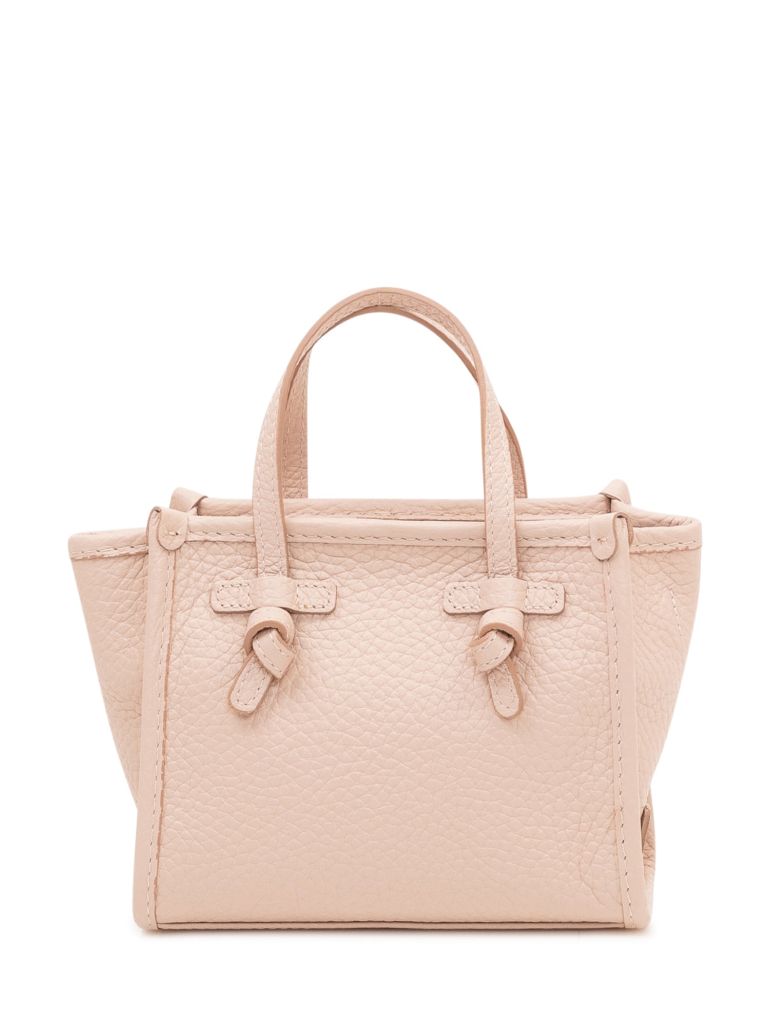 Compact handbag with double handles, front knotted details and defined structure, elegant and functional design