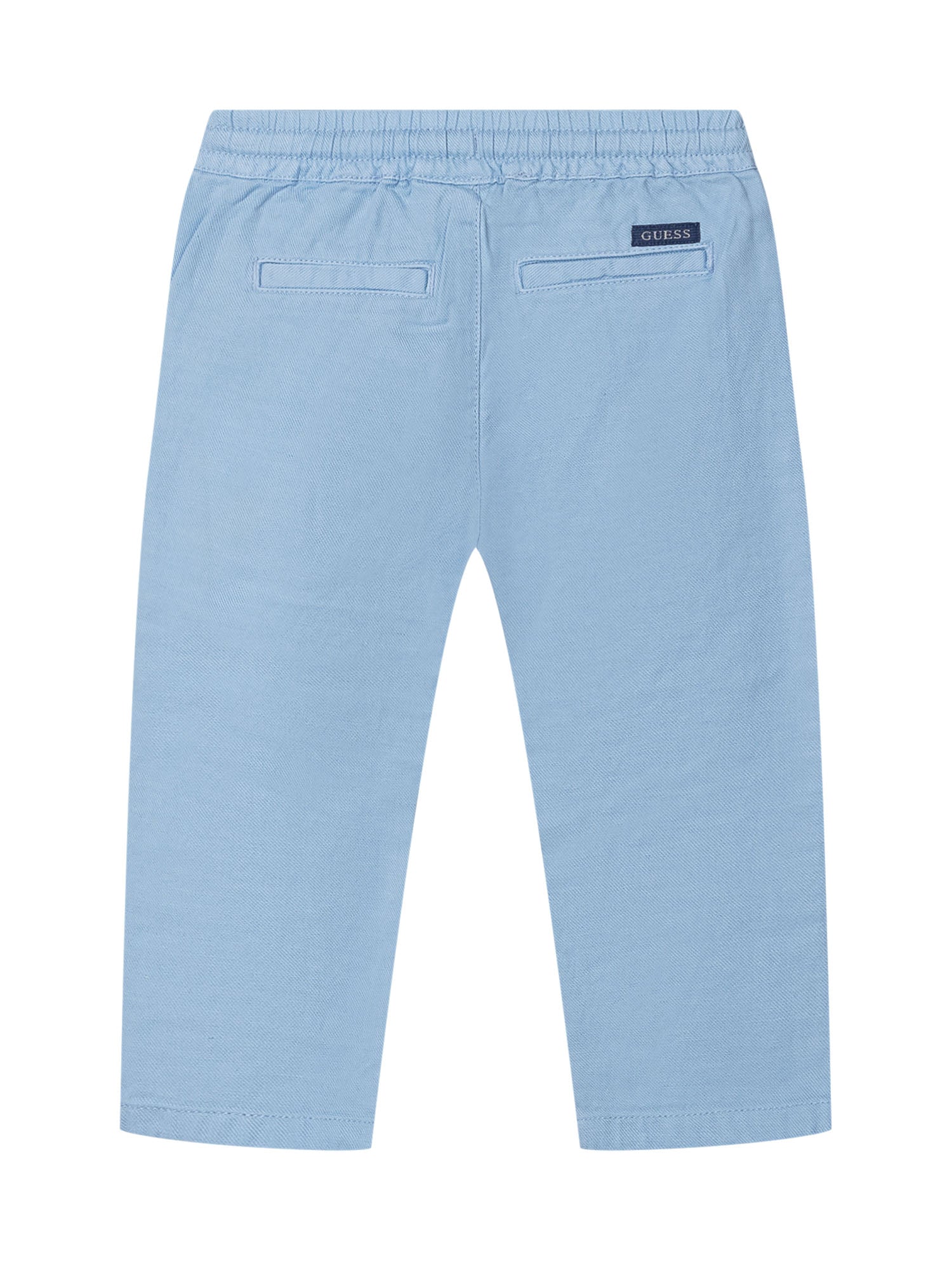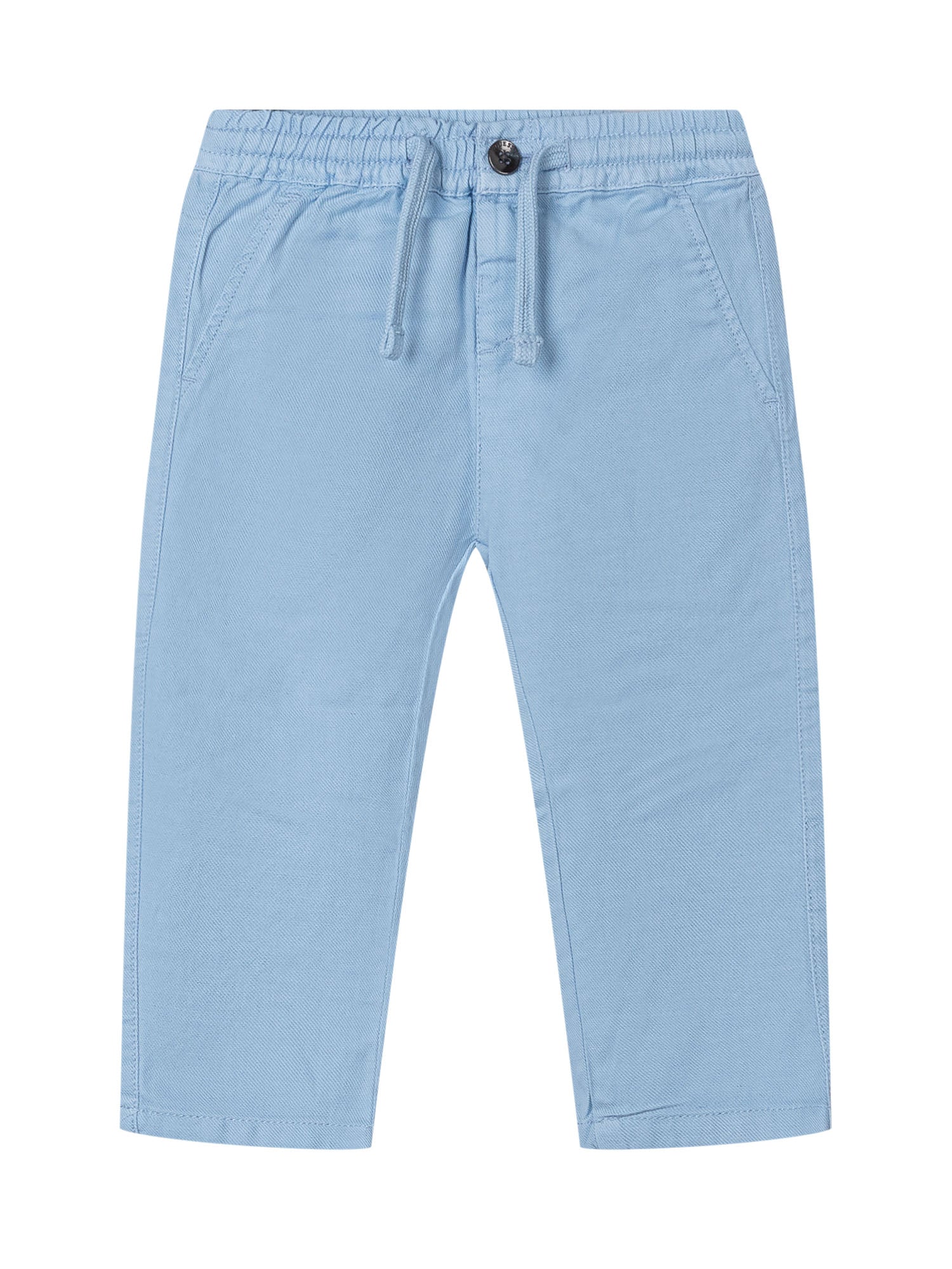 Pants with elastic waistband and drawstring, button closure and side pockets, straight leg