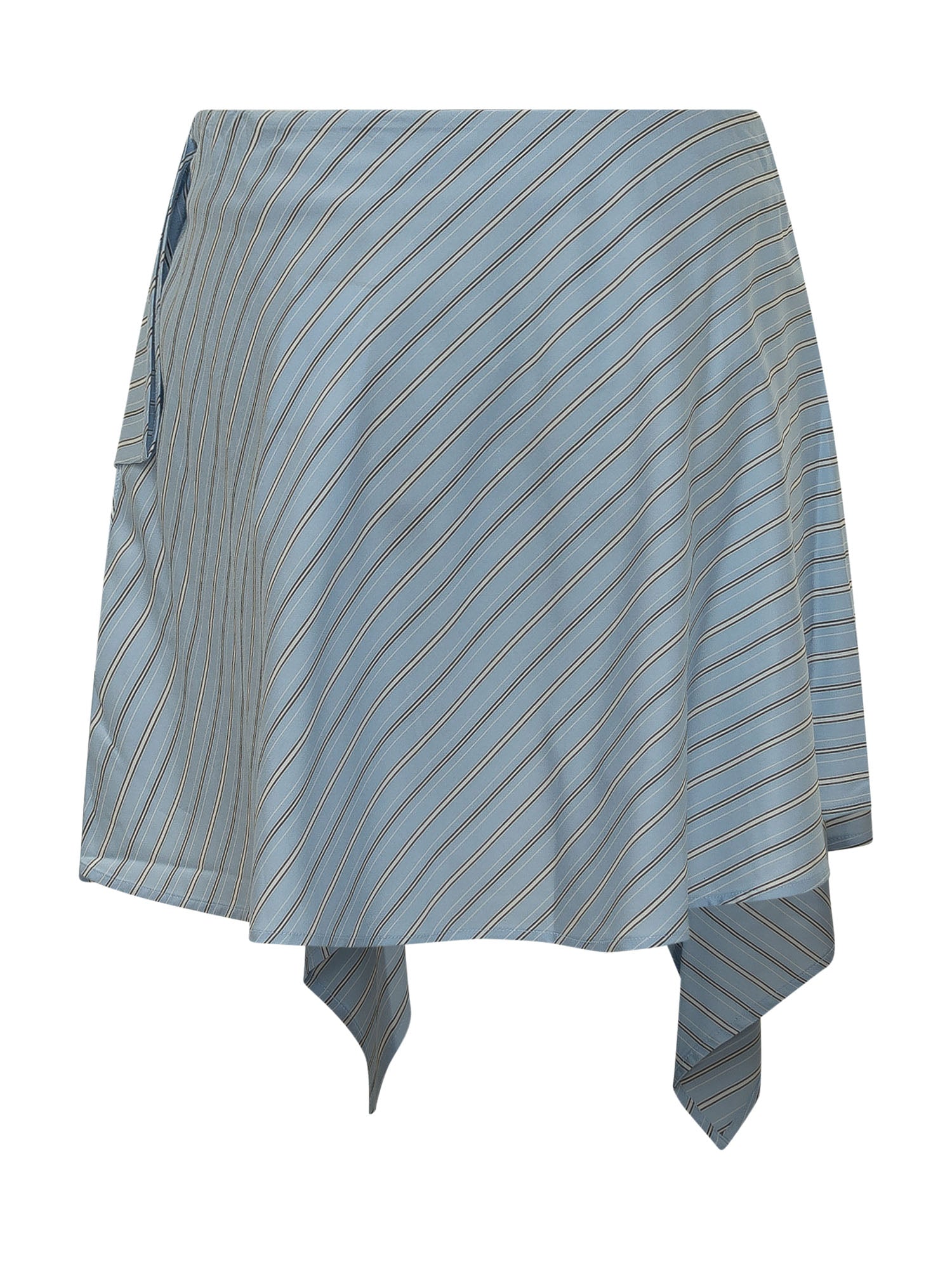 Striped skirt with wide design and asymmetrical hem. Fluid silhouette with draped panels creating movement. Lightweight and soft structure suitable for summer or casual looks.