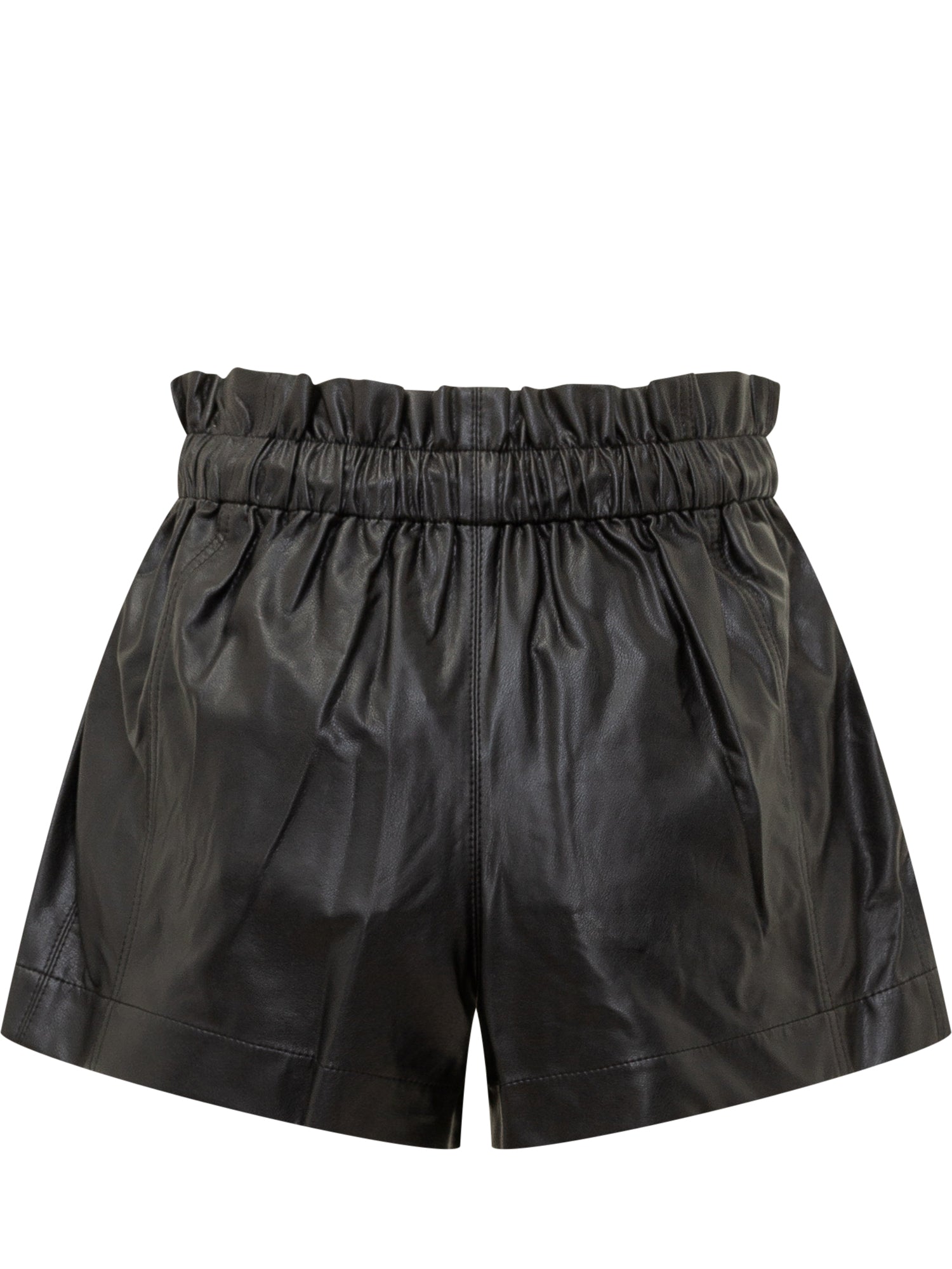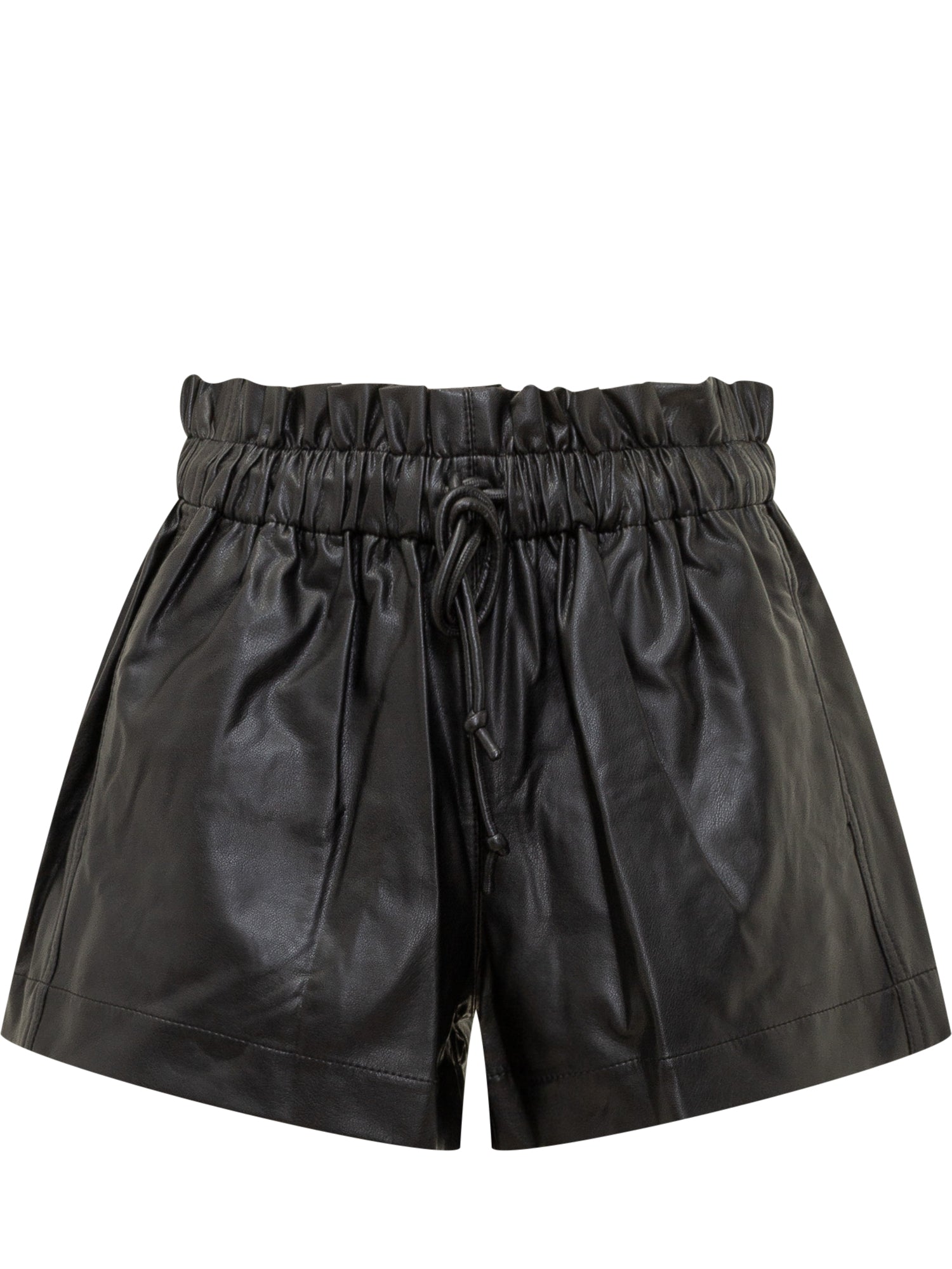 Naline leather shorts with elastic waistband and adjustable drawstring. The relaxed silhouette adds a modern.